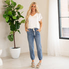 Judy Blue jeans and shorts are made to move with you. Designed with stretch, structure, and curve-hugging comfort, they flatter every shape. Most shoppers size down one full size in stretchy styles, and many plus-size shoppers love the flex and recovery built into every pair.