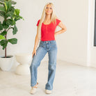Judy Blue jeans and shorts are made to move with you. Designed with stretch, structure, and curve-hugging comfort, they flatter every shape. Most shoppers size down one full size in stretchy styles, and many plus-size shoppers love the flex and recovery built into every pair.