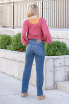 Elevate your denim collection with these High Waist Hidden Button-Fly Dad Jeans. Their 4-way stretch fabric ensures both comfort and style, while the high waist adds a trendy touch. In a medium blue shade, these jeans are perfect for versatile and fashion-forward looks. The ideal choice for those who want to blend comfort with effortless chic.