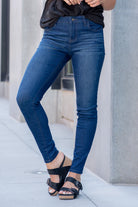 Alyssa wears a size 25 in jeans, a small in tops, and 8 in shoes. She is wearing size 3 in these jeans.