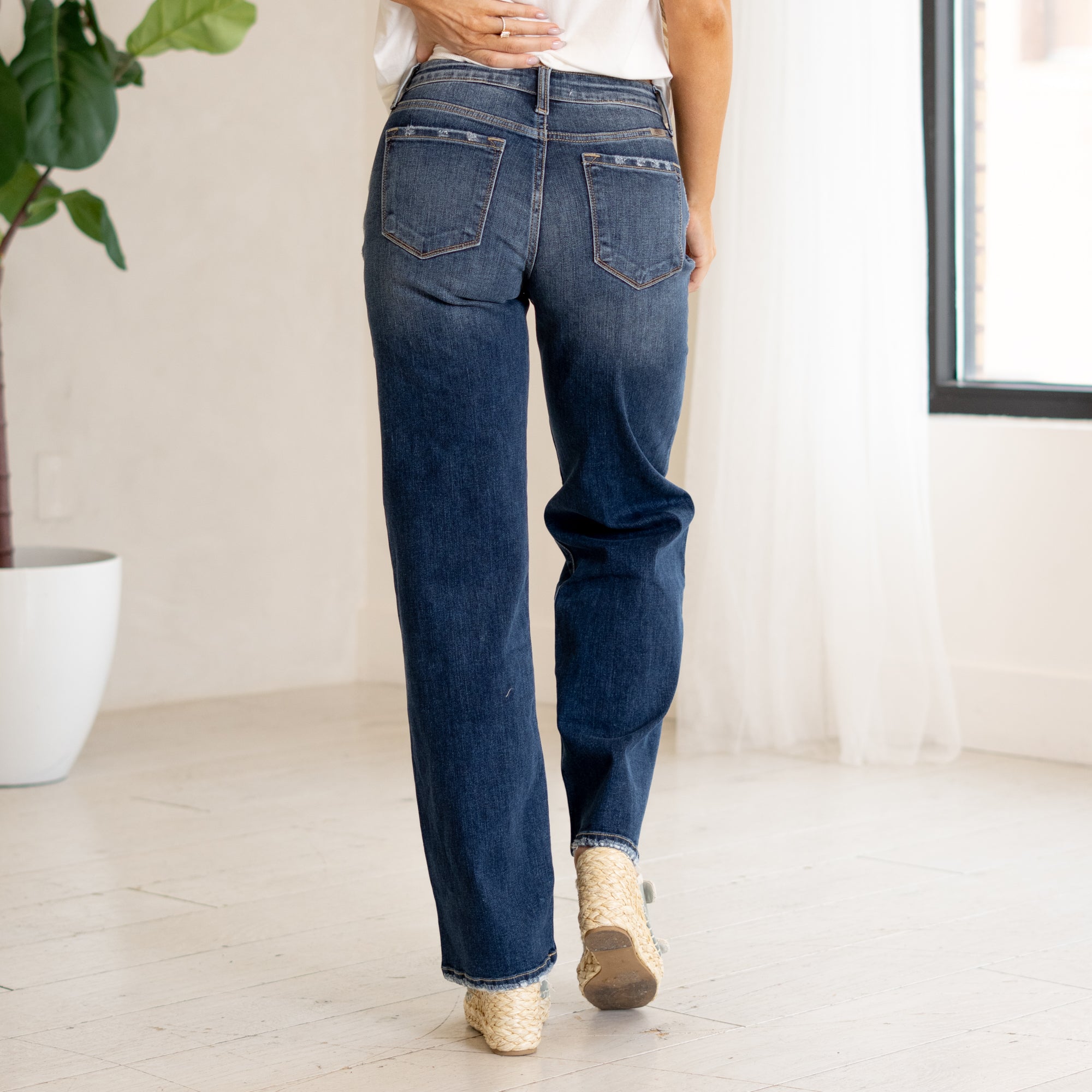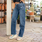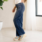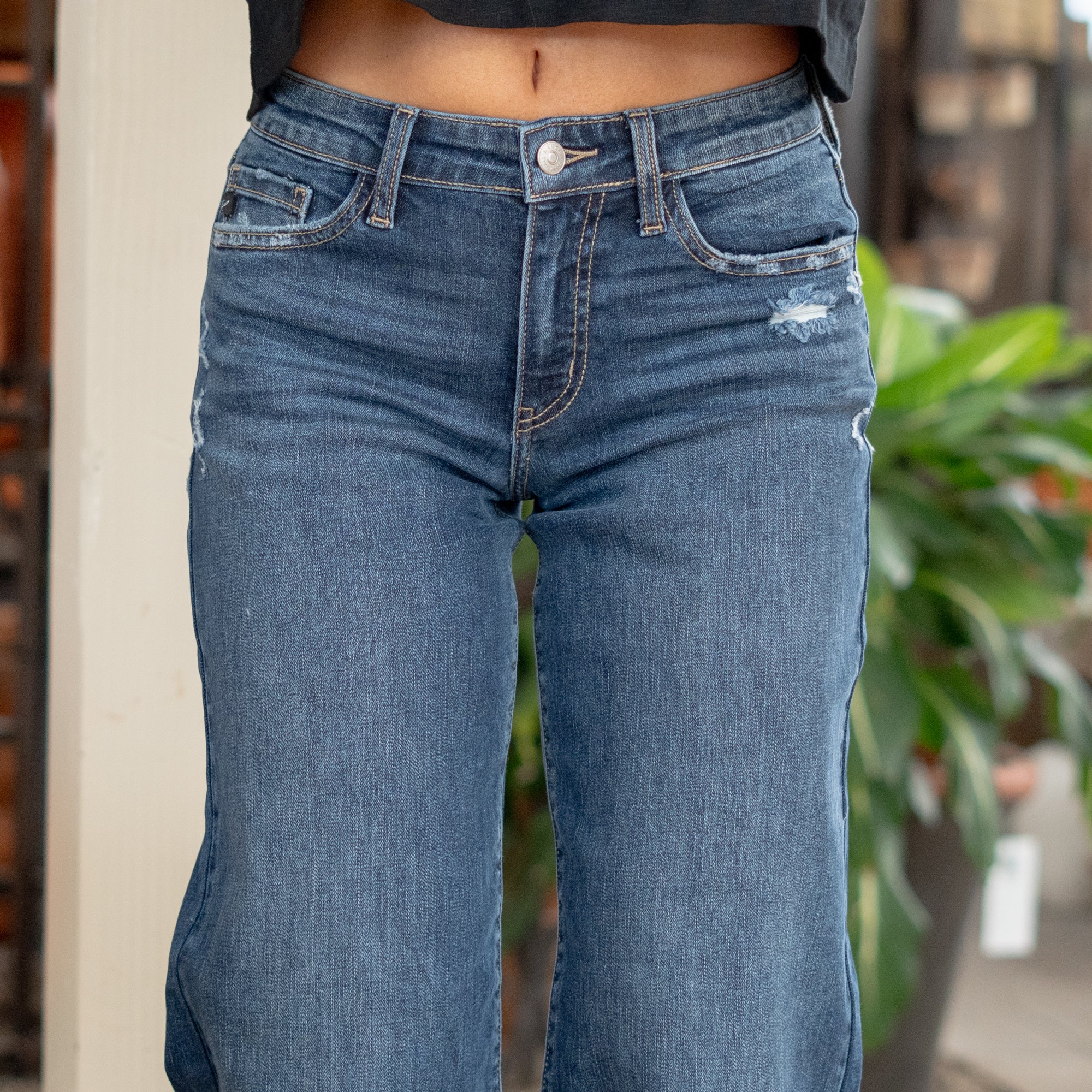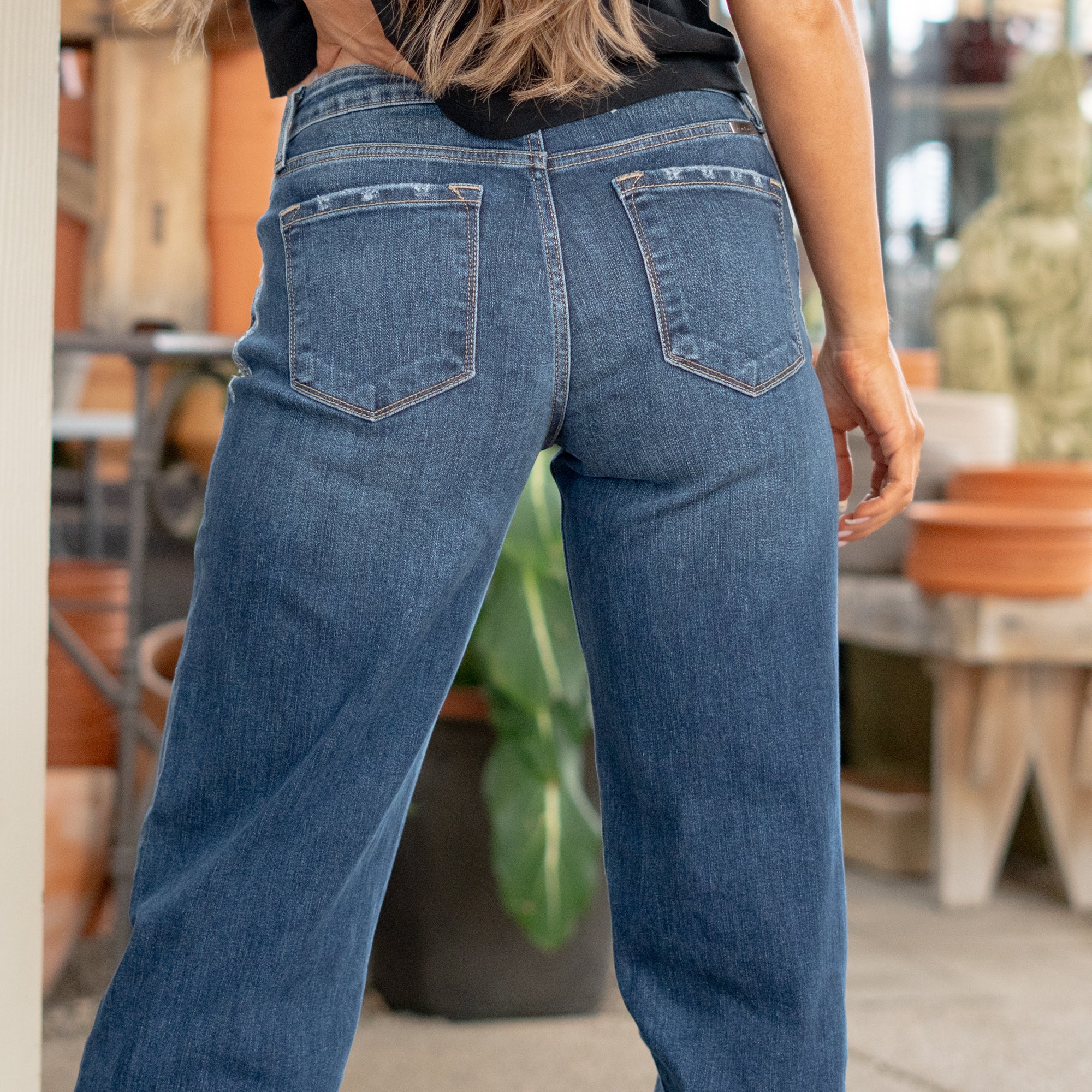KanCan Gemma Mid Rise Wide Leg Dark Blue Wash