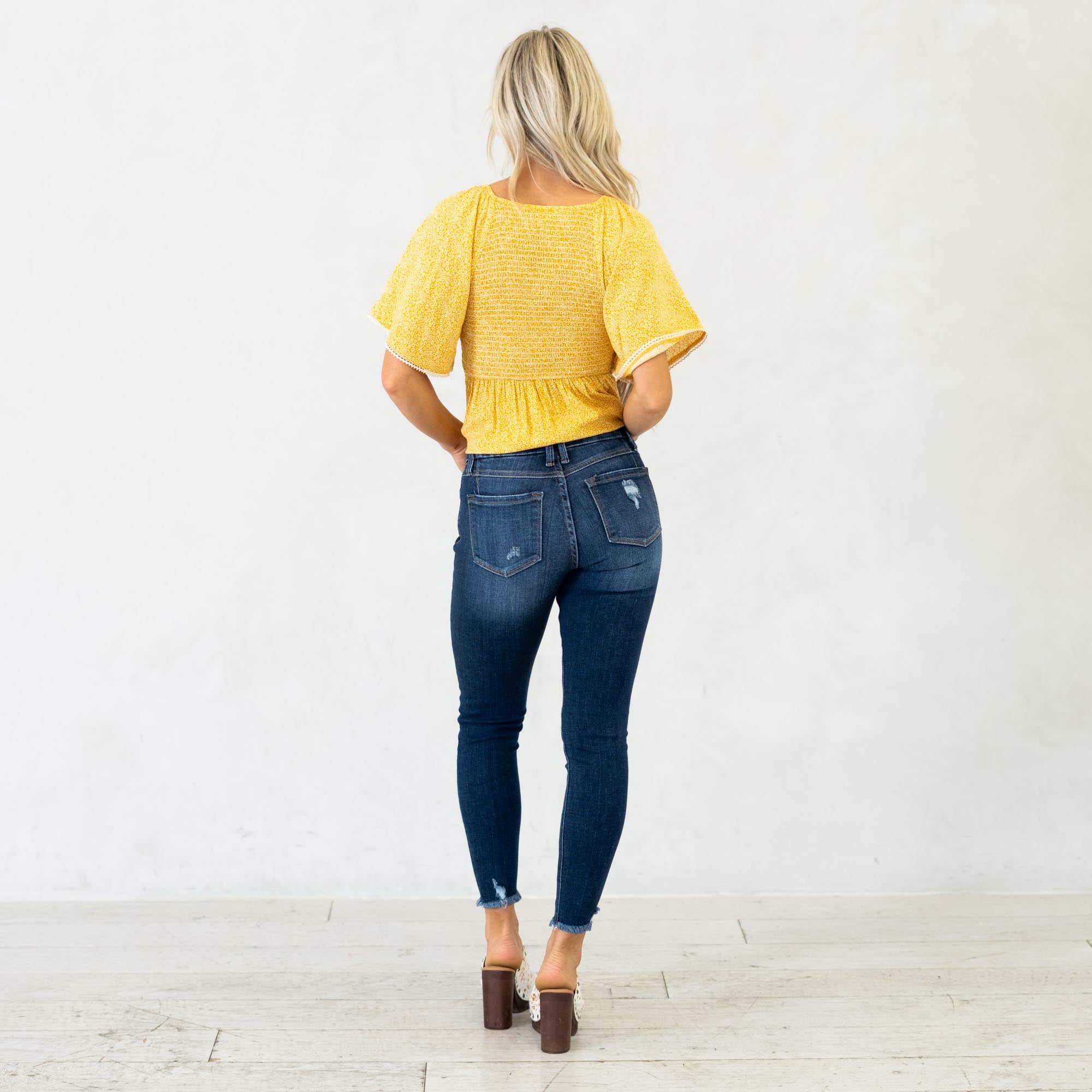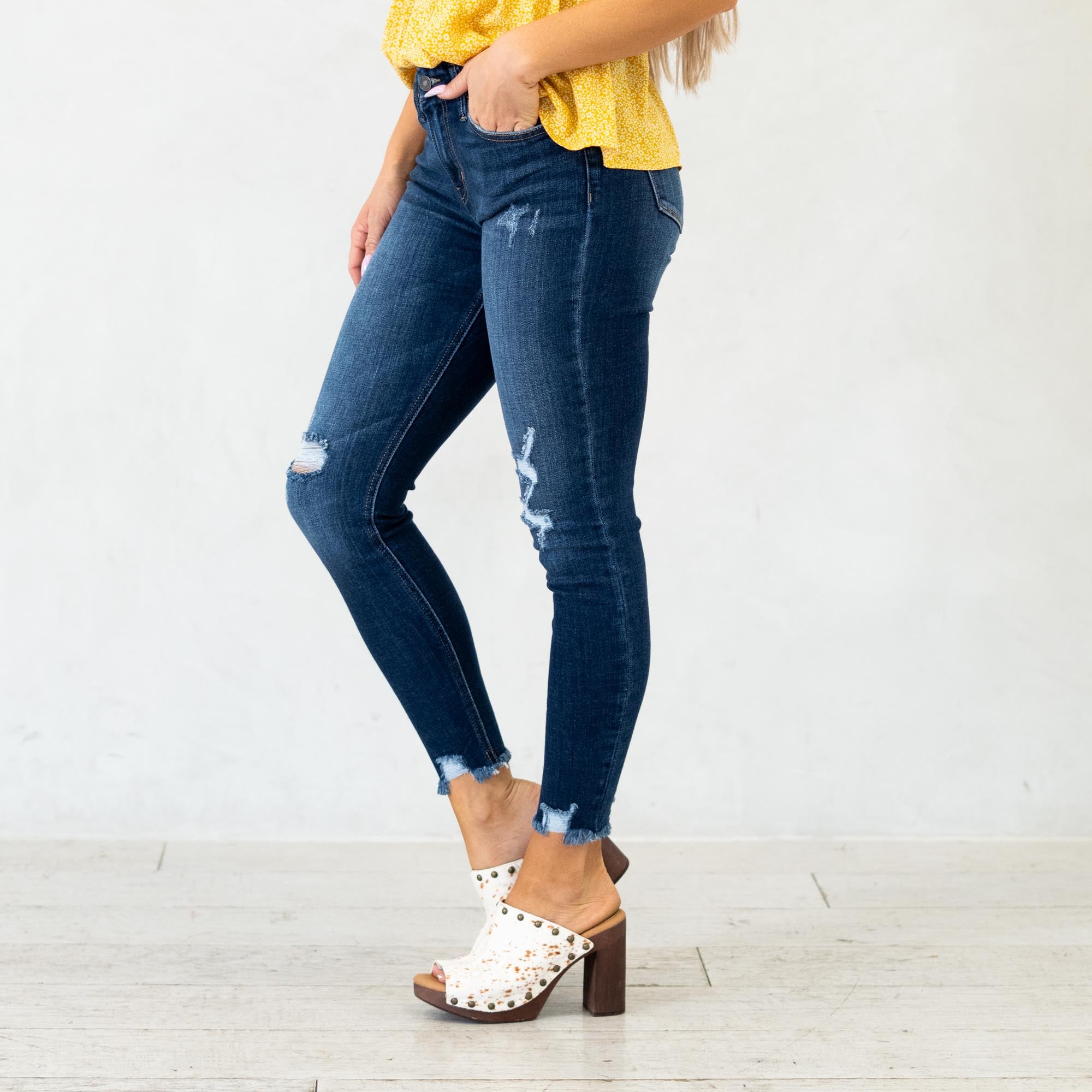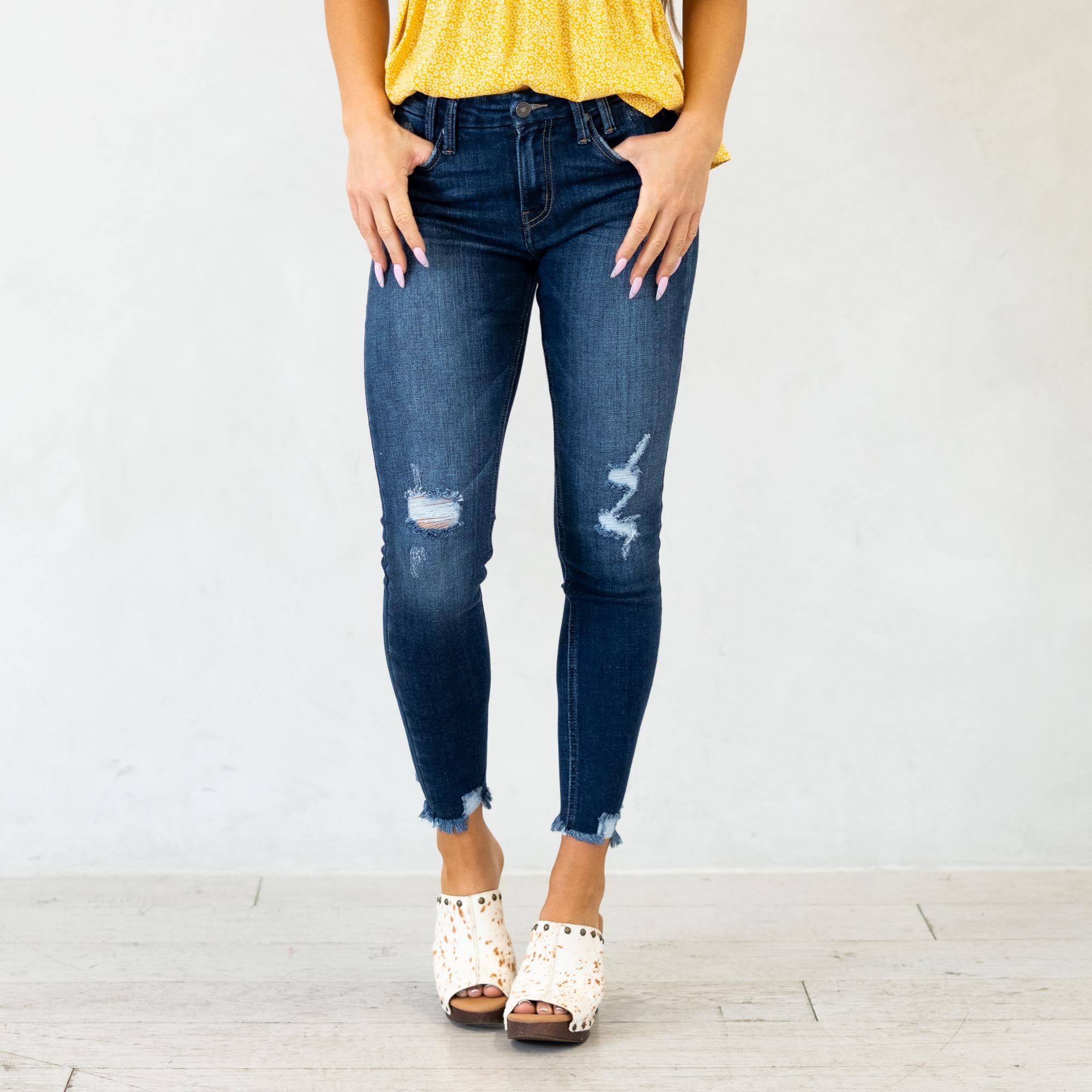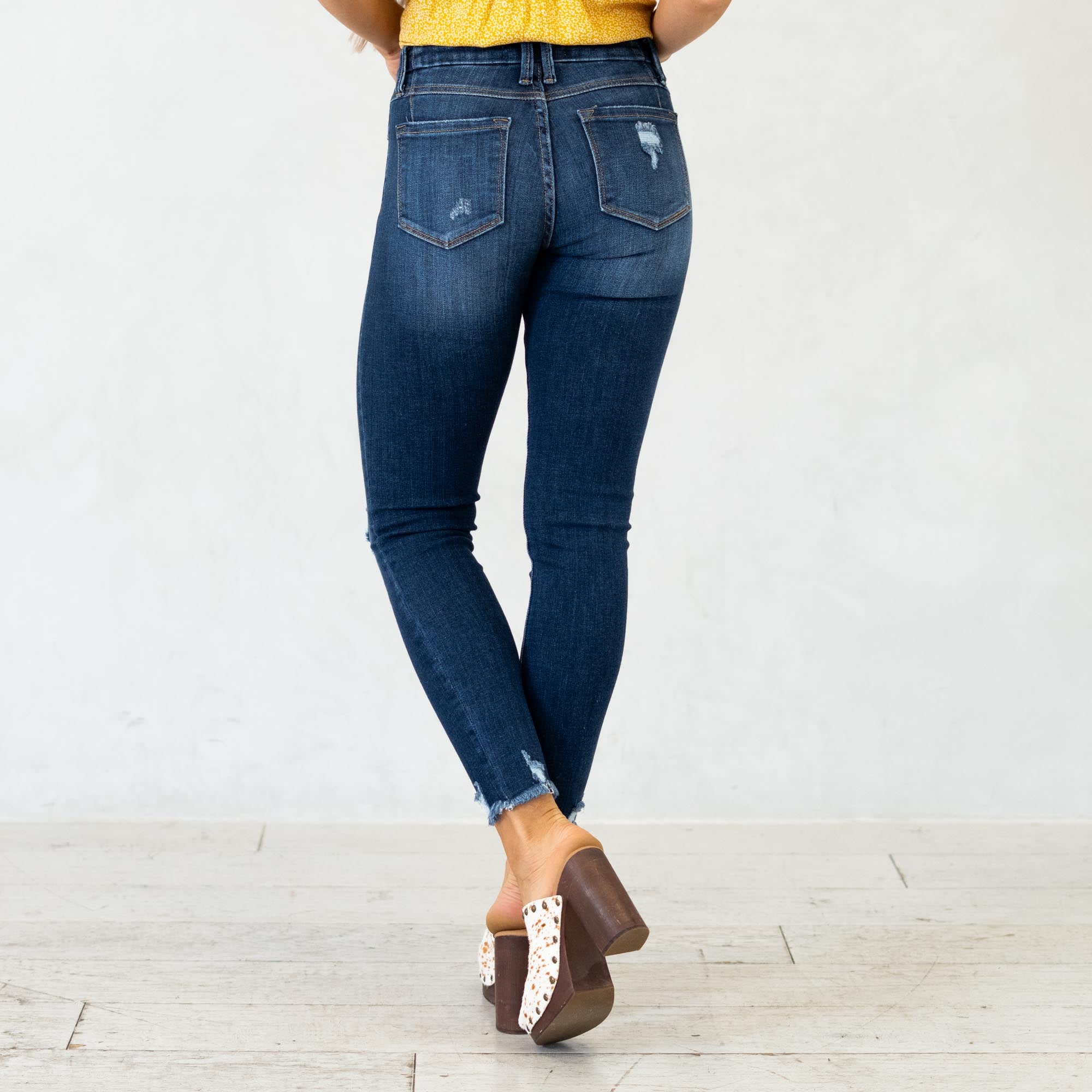 KanCan Fiora Mid Rise Ankle Skinny Jeans Dark Blue Wash