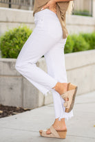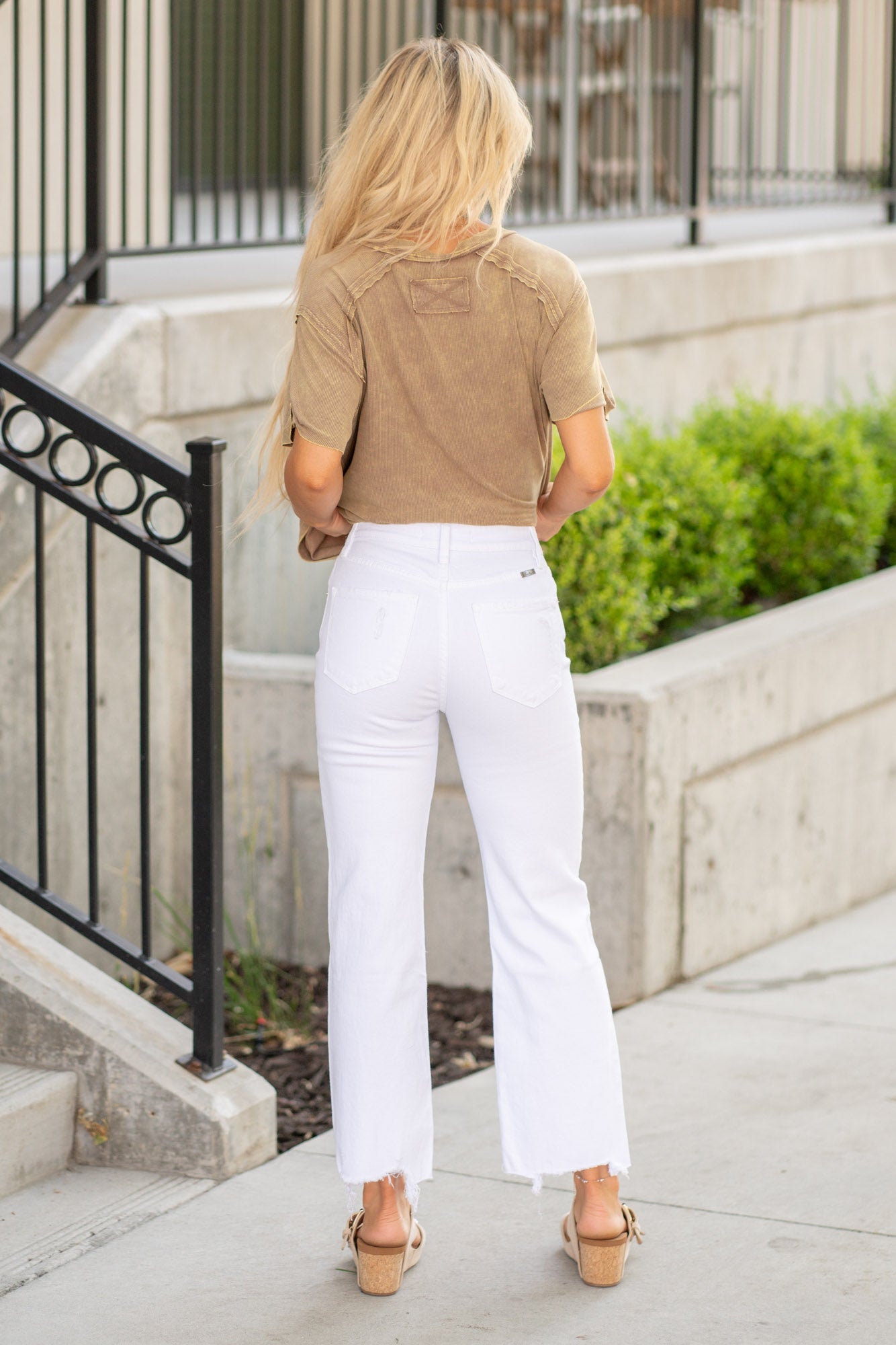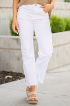 Show off your personality with the Skyla High Rise Slim Wide Leg Jeans! These jeans sit comfortably above the waist and transition to a slim-wide fit that flows elegantly down the leg, finished with a trendy frayed hem. Designed with a classic 5-pocket style, they also feature light distress details for a touch of casual edge. The single front button closure and zip fly add practicality to their stylish design, making the Skyla jeans a perfect choice for a chic and unique look.