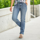 Effortlessly sleek and endlessly wearable. The Rachelle Mid Rise Slim Straight features a flattering medium wash and a timeless silhouette that hugs in all the right places. Crafted from ultra-soft stretch denim, this pair moves with you for all-day comfort and a fit that feels custom. Finished with a 1" hem, trouser-style patch pockets, and a clean single-button closure for a tailored, polished touch.