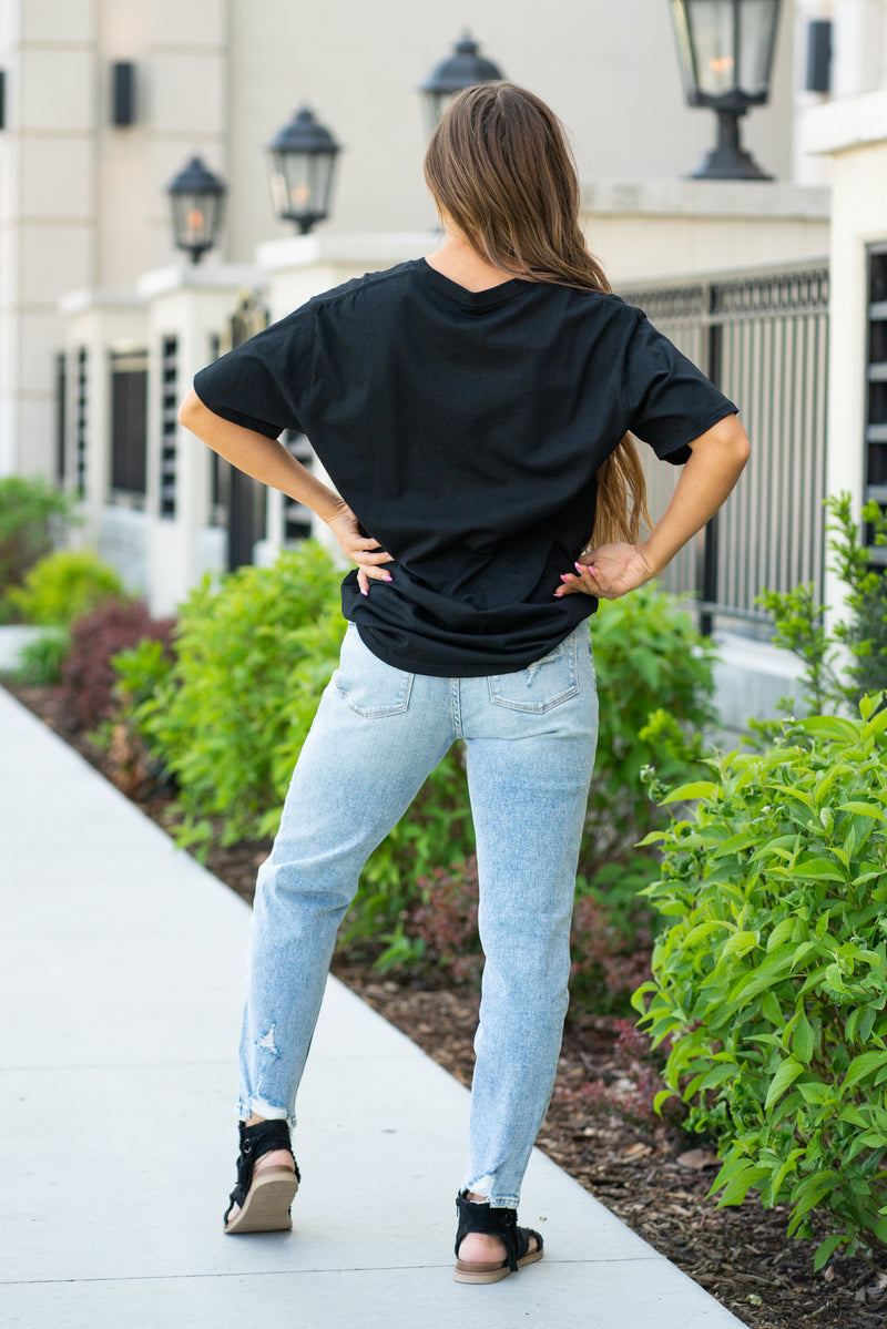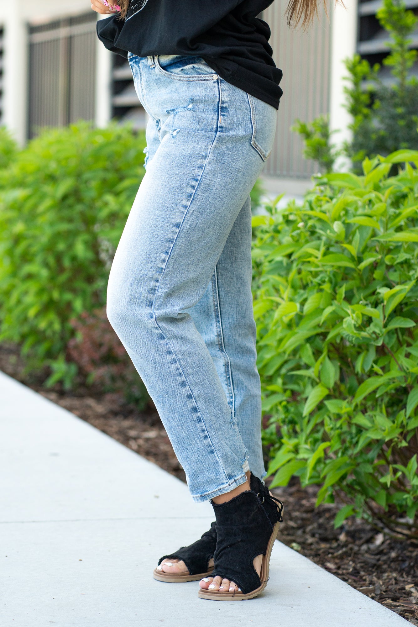 These mom jeans will become your go-to! Pair these girlfriend mom fit with chunky sandals and a tee for an easy summer look.
