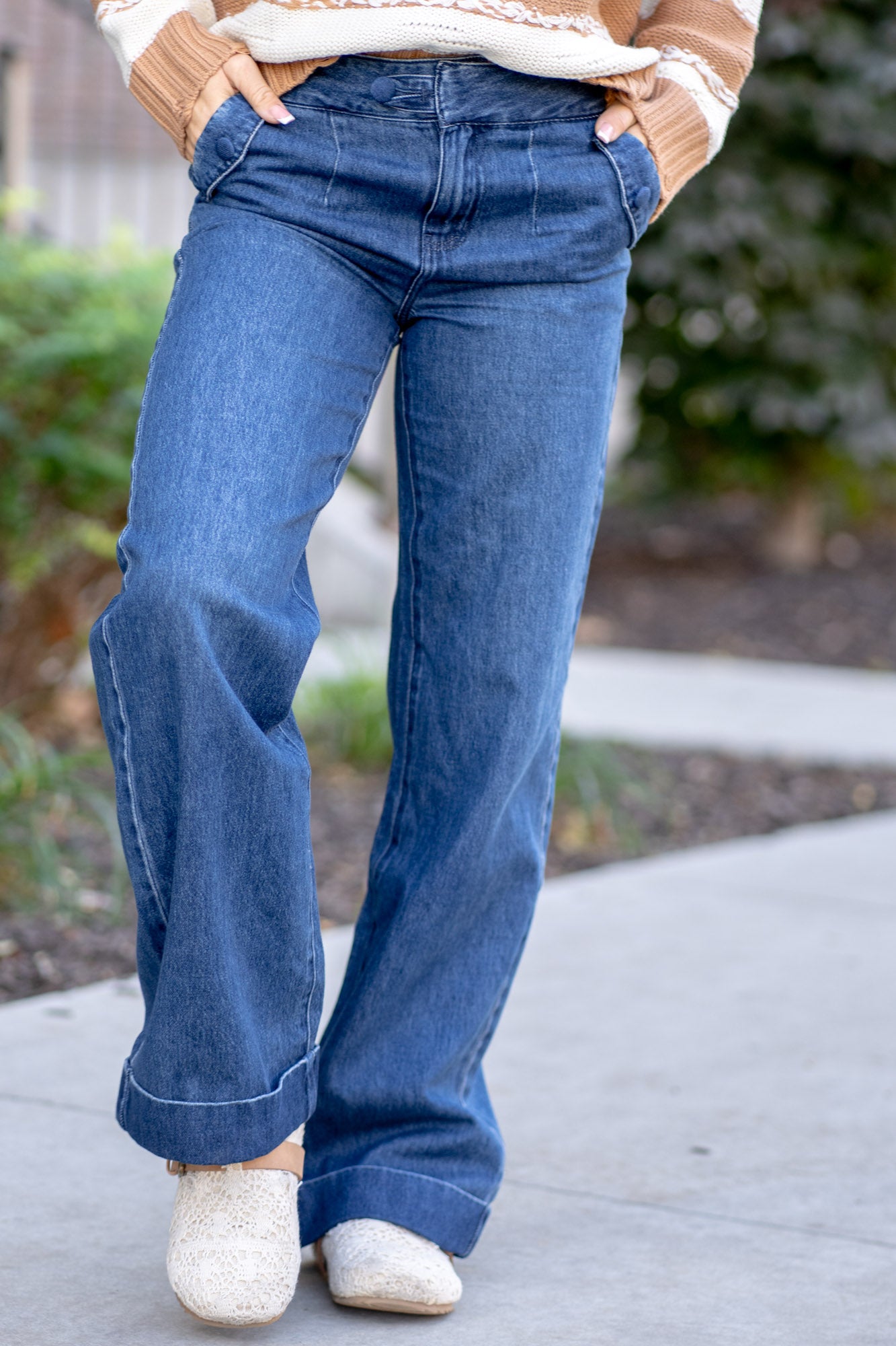 - Rigid denim = size up for a relaxed fit in the waist.