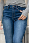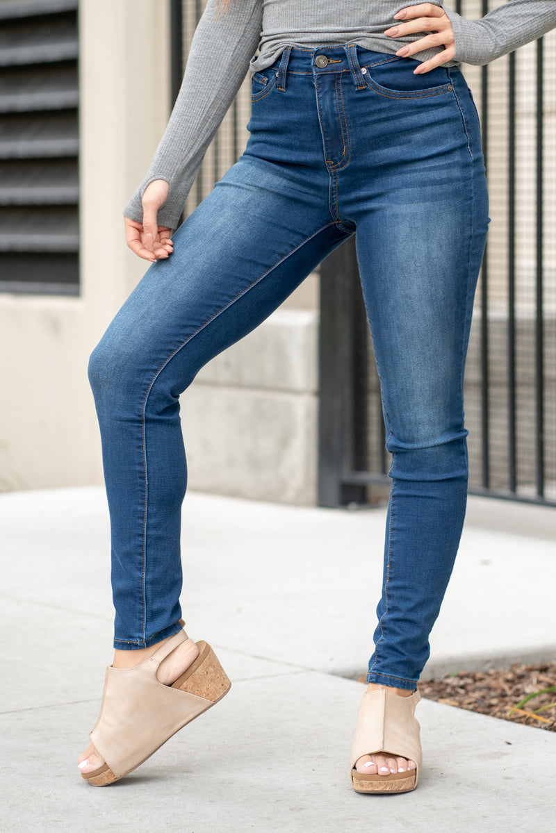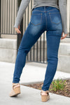 Alyssa is 5'5" and wears a size 25 in jeans, a small in tops, and 8 in shoes. She is wearing a size 25 in these jeans.