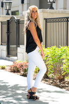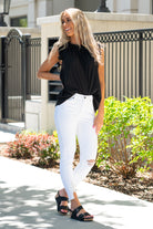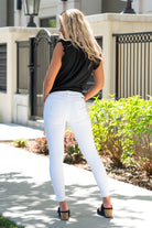 You will want to live in these trendy step hem white jeans this summer! With a High Waist and ankle-length, they are perfect for dressing up or down.
