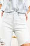 Take me back and make it better. These shorts feature a ripped over knee 90s style boyfriend fit with low to no stretch. Pair with your favorite graphics tee and sneakers for a comfortable throwback look!