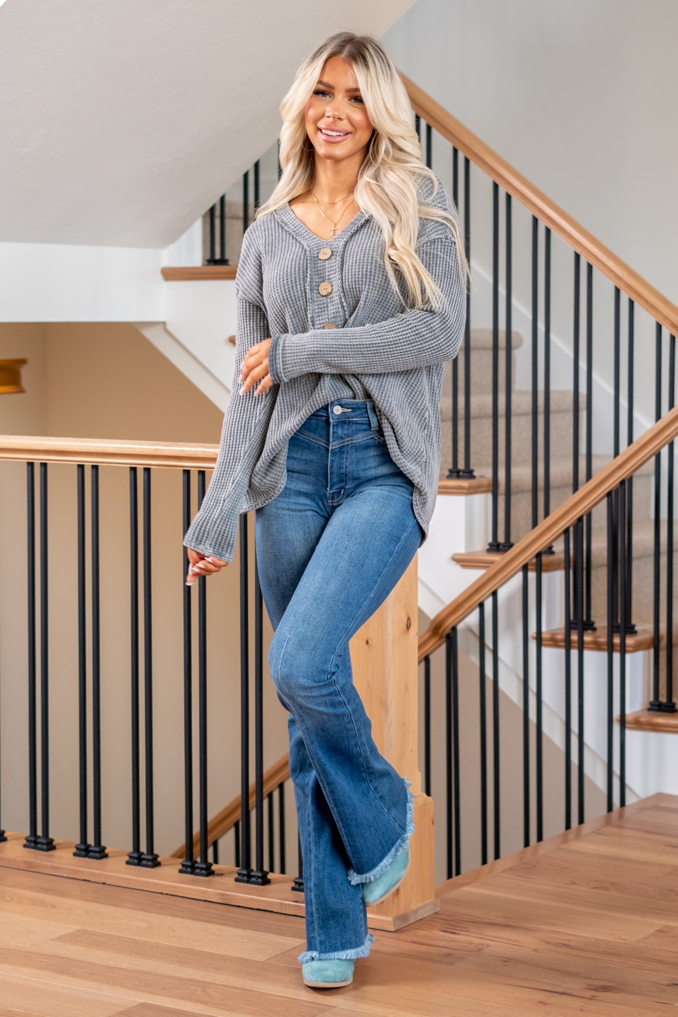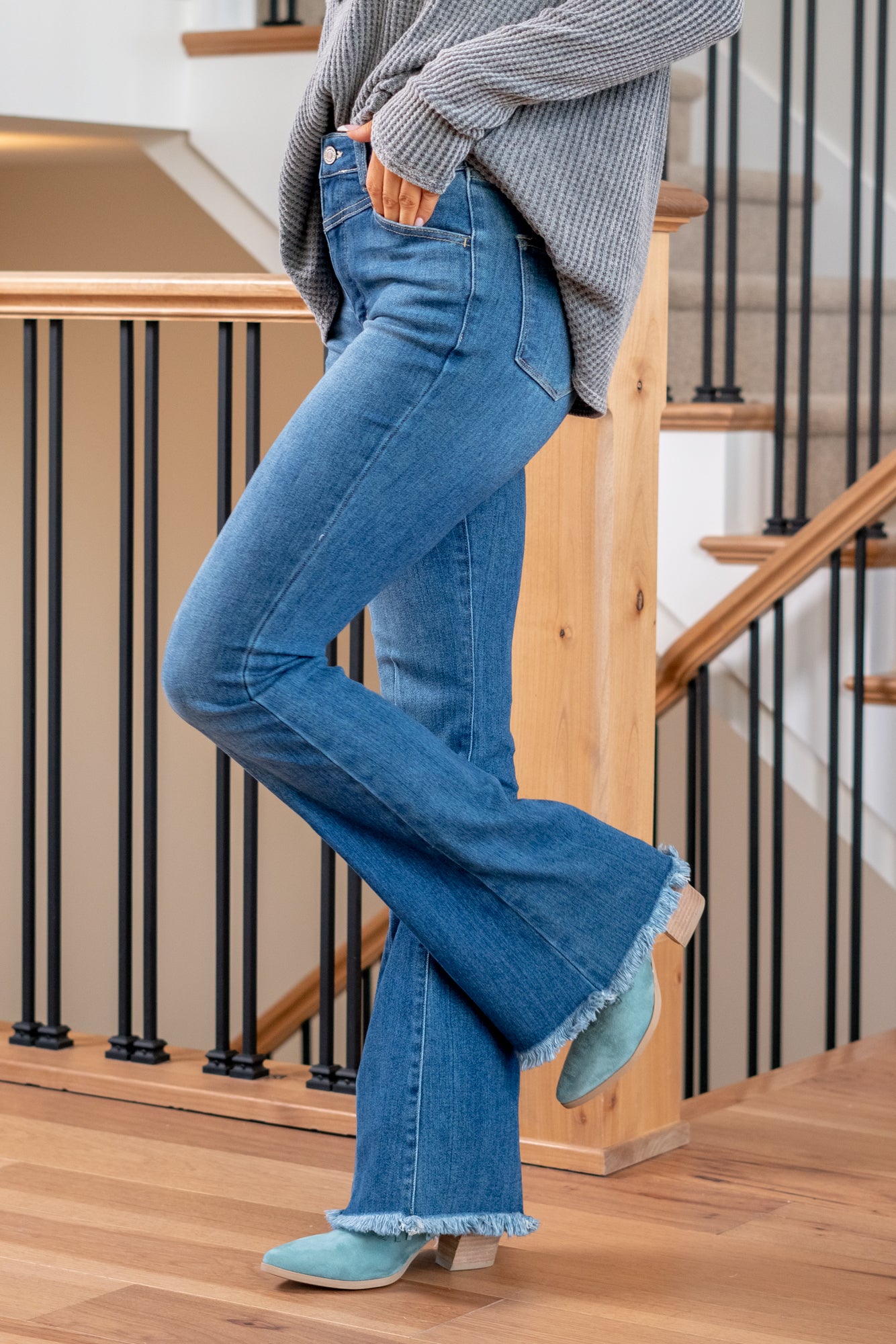 You will love the way these flare cuts fit your curves. Dress up with heels and a cute flutter sleeve top for a night out.