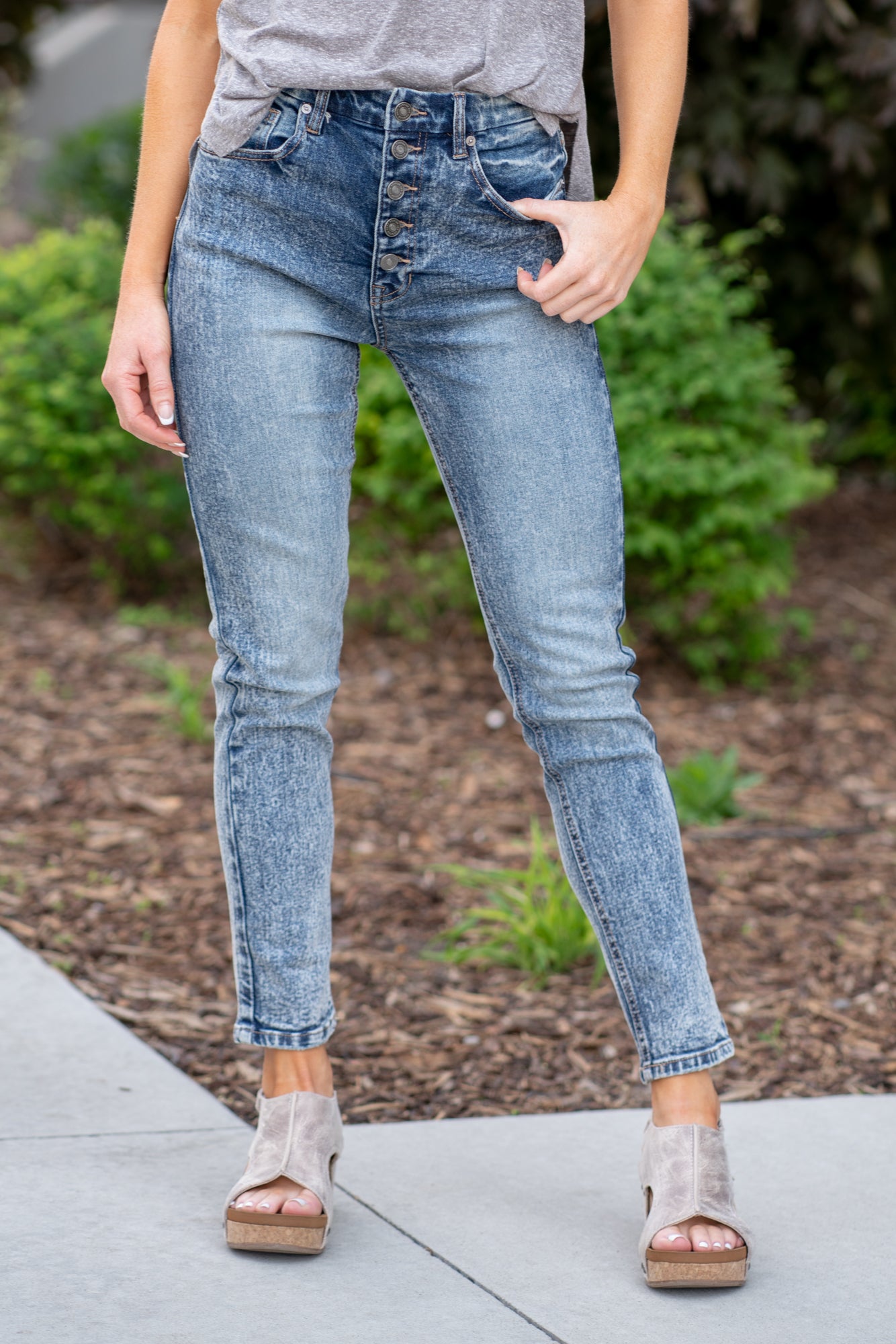 Introducing the ultimate style sensation - high-rise cigarette fit jeans! These jeans are designed to elevate your look with a sleek and sophisticated silhouette. With a stretchiness level of comfort stretch, they offer the perfect balance of flexibility and comfort for all-day wear. The hidden waistband creates a smooth and streamlined appearance, while the exposed buttons add a touch of trendy flair. Complete with a classic five-pocket style, these jeans are a timeless wardrobe staple that effortlessly combines style and functionality. Step out in confidence and embrace the chic allure of these high-rise cigarette fit jeans!