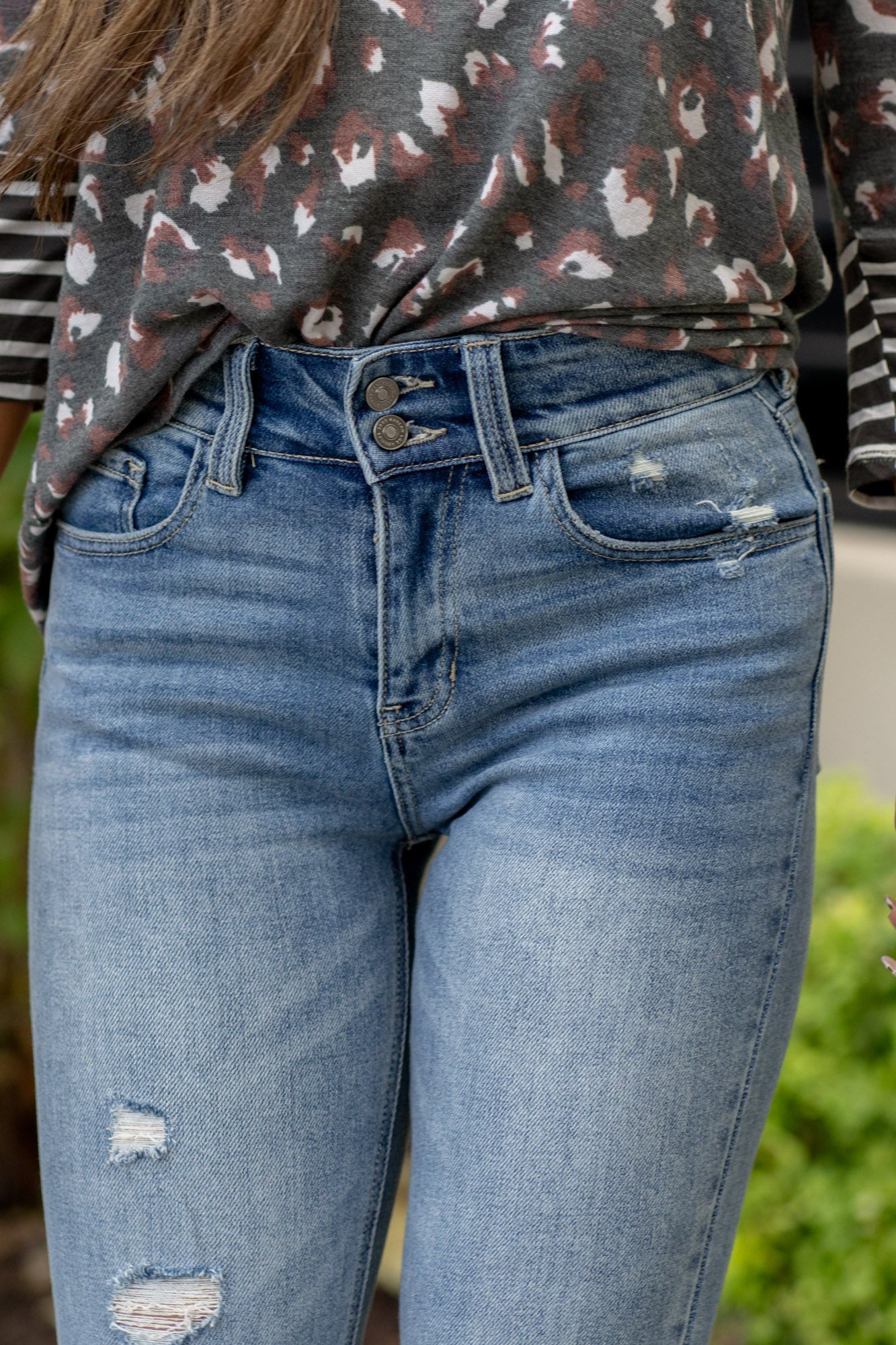 - Rigid denim = size up for a relaxed fit in the waist.