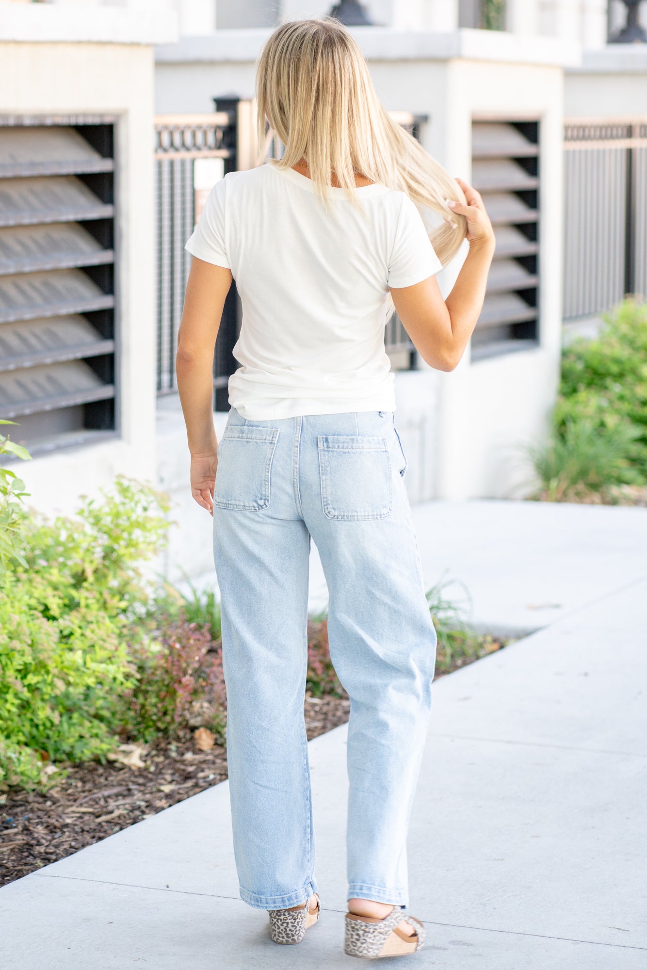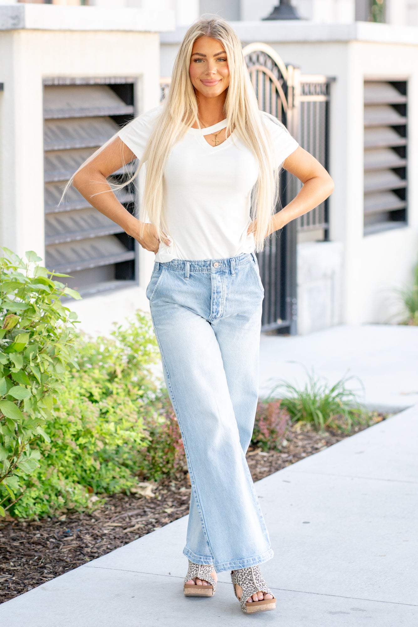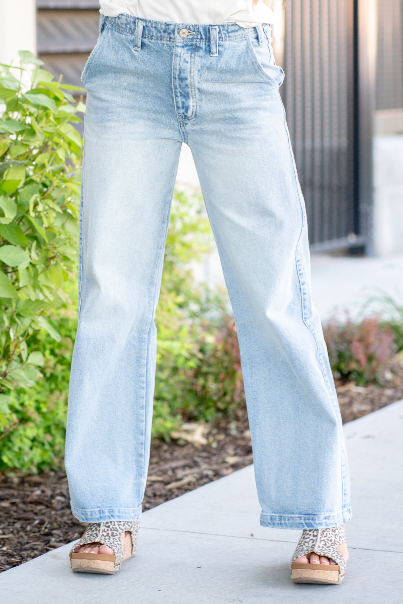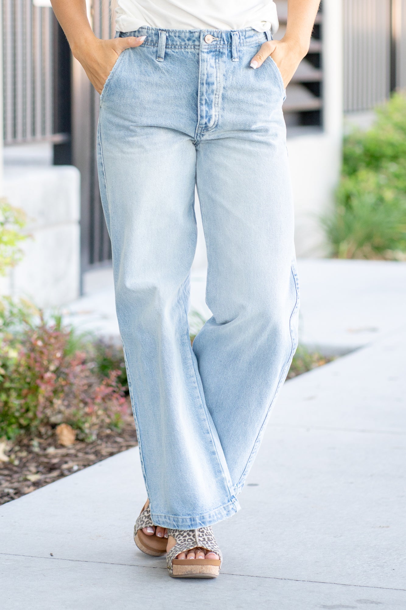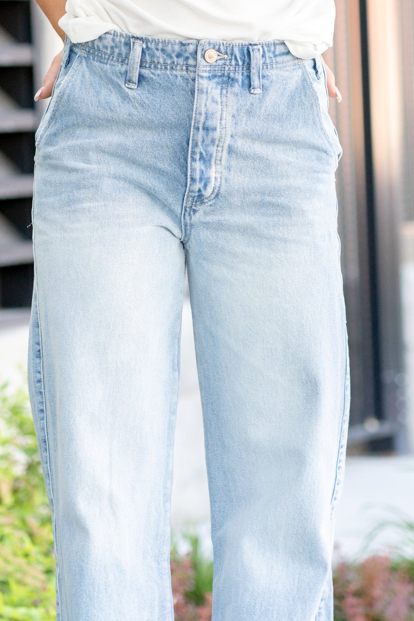 The High Rise 90s Wide Leg jeans feature a stylish and retro design. With a rigid stretchiness level, these jeans offer a classic and vintage feel. The wide leg provides a fashionable and comfortable fit, while the regular hem and slant front pocket add practicality and flair. The hidden buttons add a sleek and streamlined look to these trendy jeans, making them a perfect addition to your fashion-forward collection.