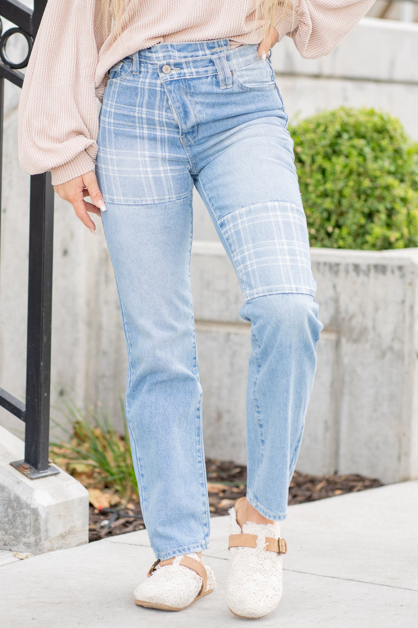 Aylin 90's Plaid Patch High Rise Boyfriend