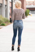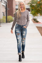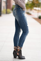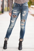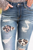 KanCan Mason Mid Rise Leopard Patch Skinny Jeans Dark Blue Wash