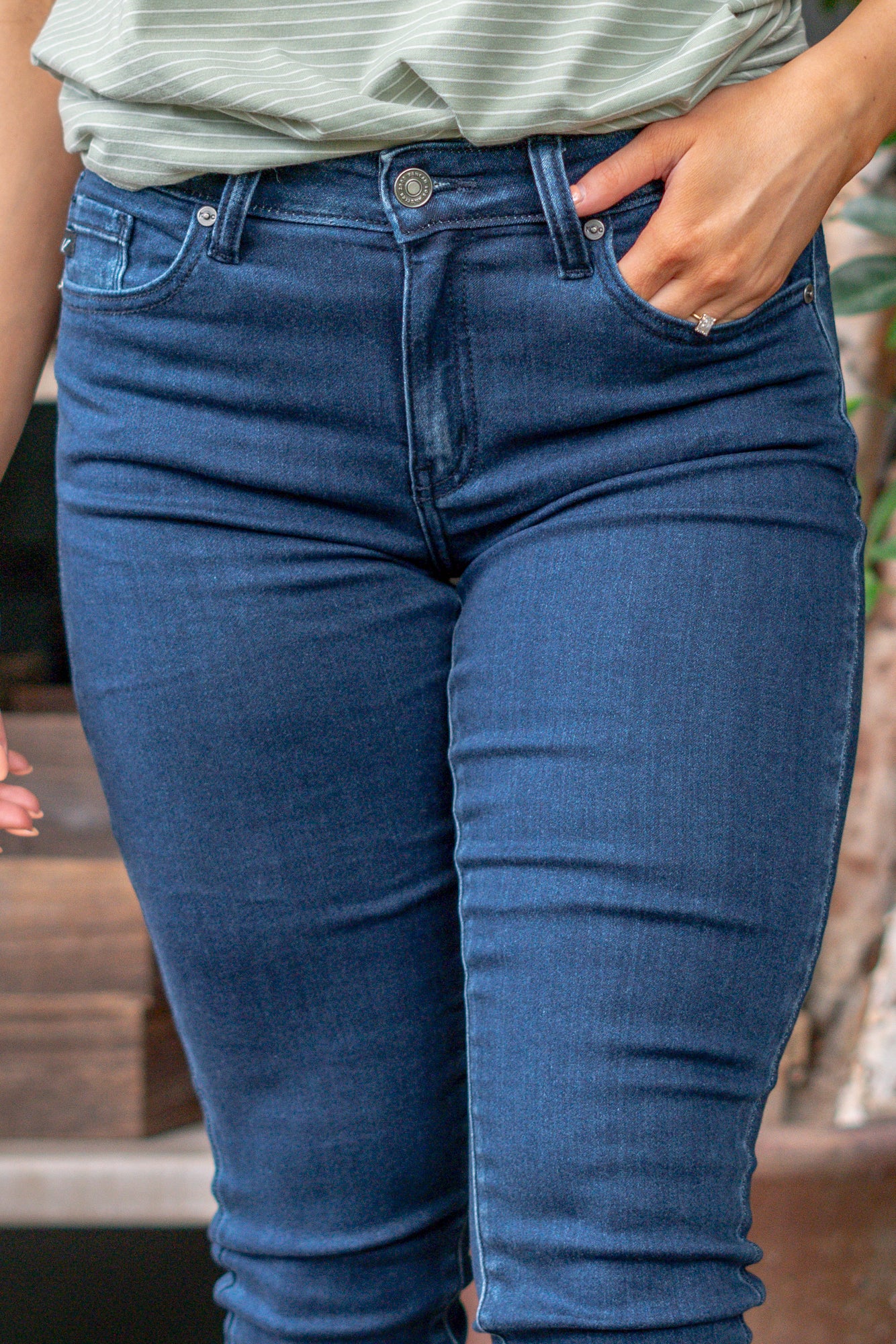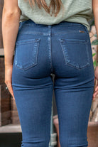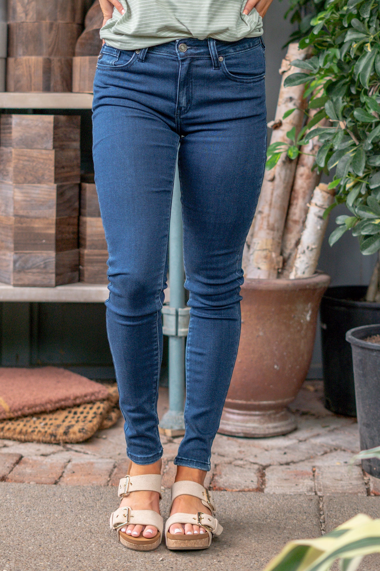Jacquelyn wears a size 25 in jeans, a small in tops, and 6.5 in shoes. She is wearing size 25 in these jeans.