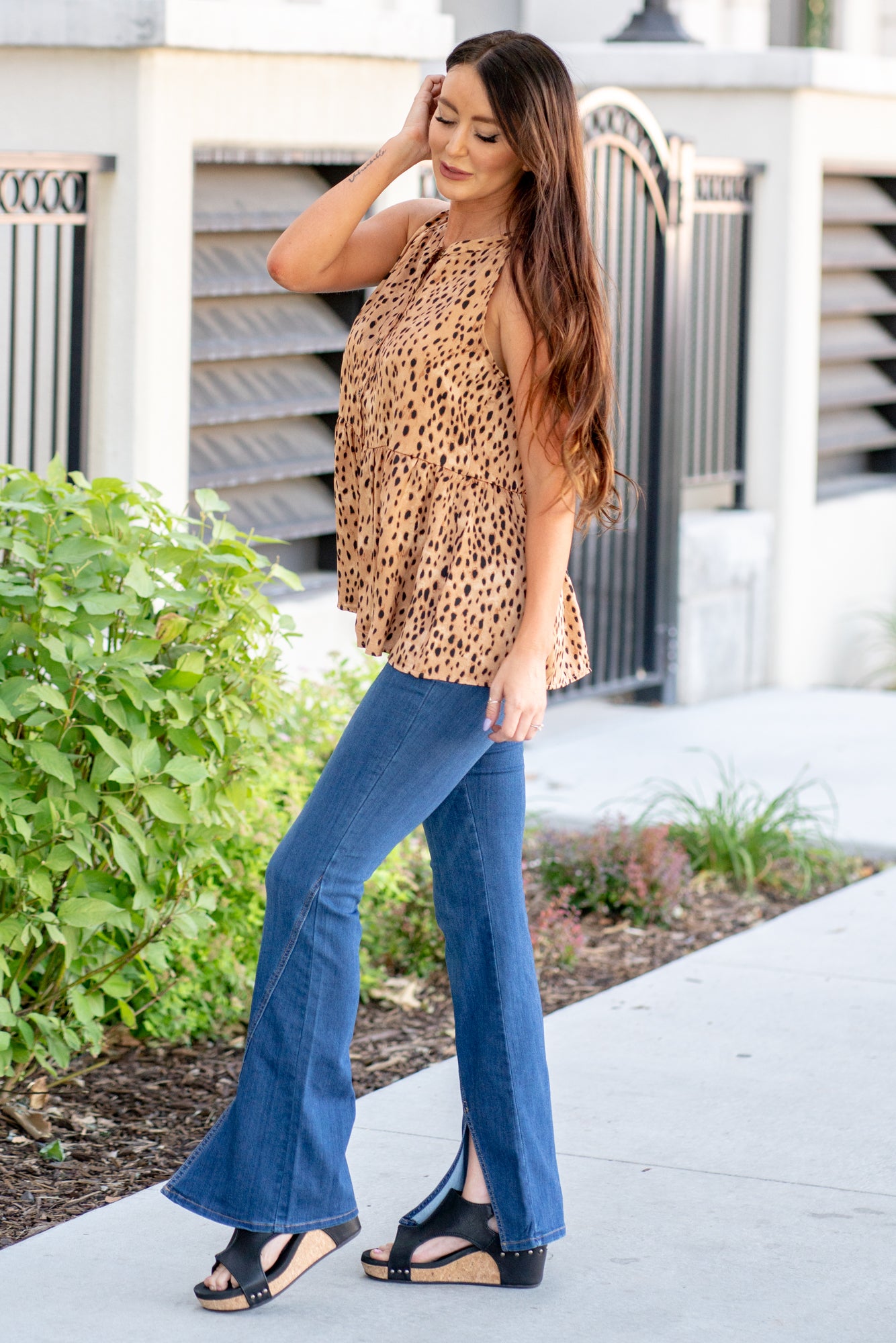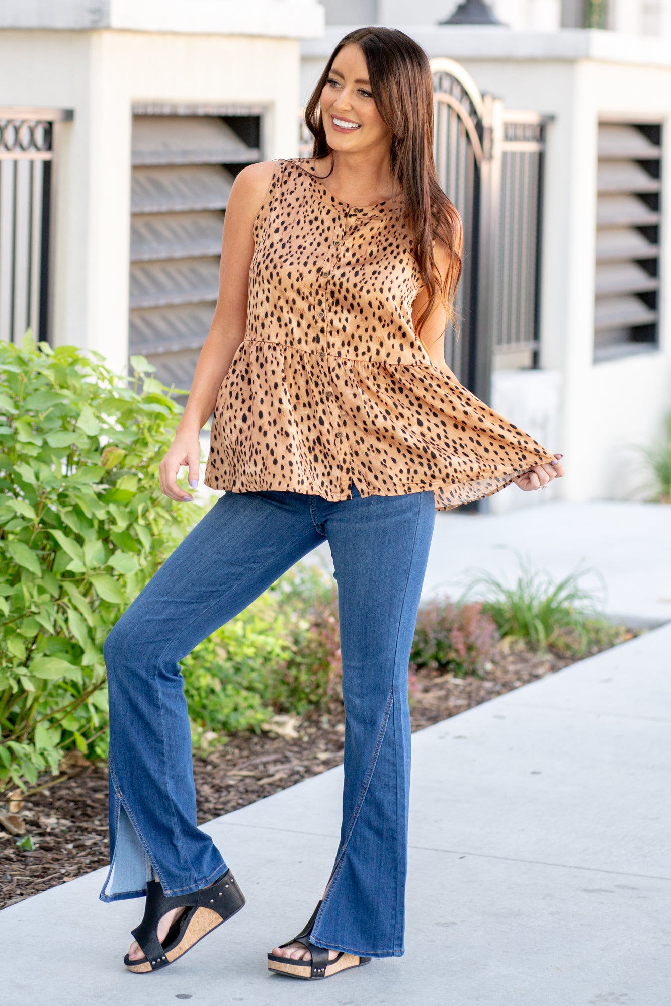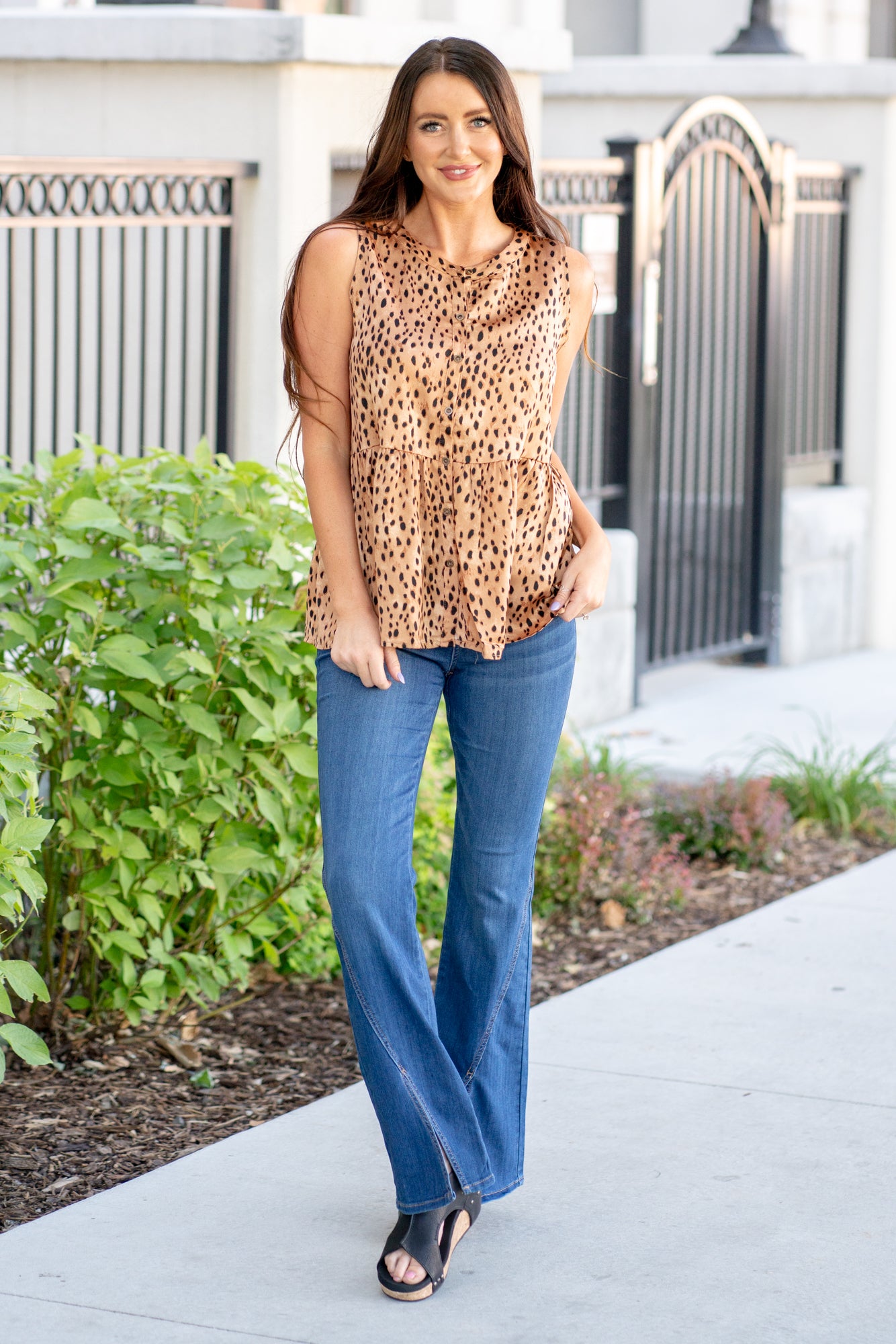 Leopard Sleeveless Blouse - Camel