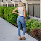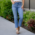 The Cassiopeia Slim Straight brings structure and ease together in one effortlessly flattering fit. Designed with a high rise waist and slim straight leg, this cropped style features comfort stretch denim, light distressing, and a crisp single cuff hem. It’s the perfect blend of relaxed and refined—made for everyday wear with a touch of star power.