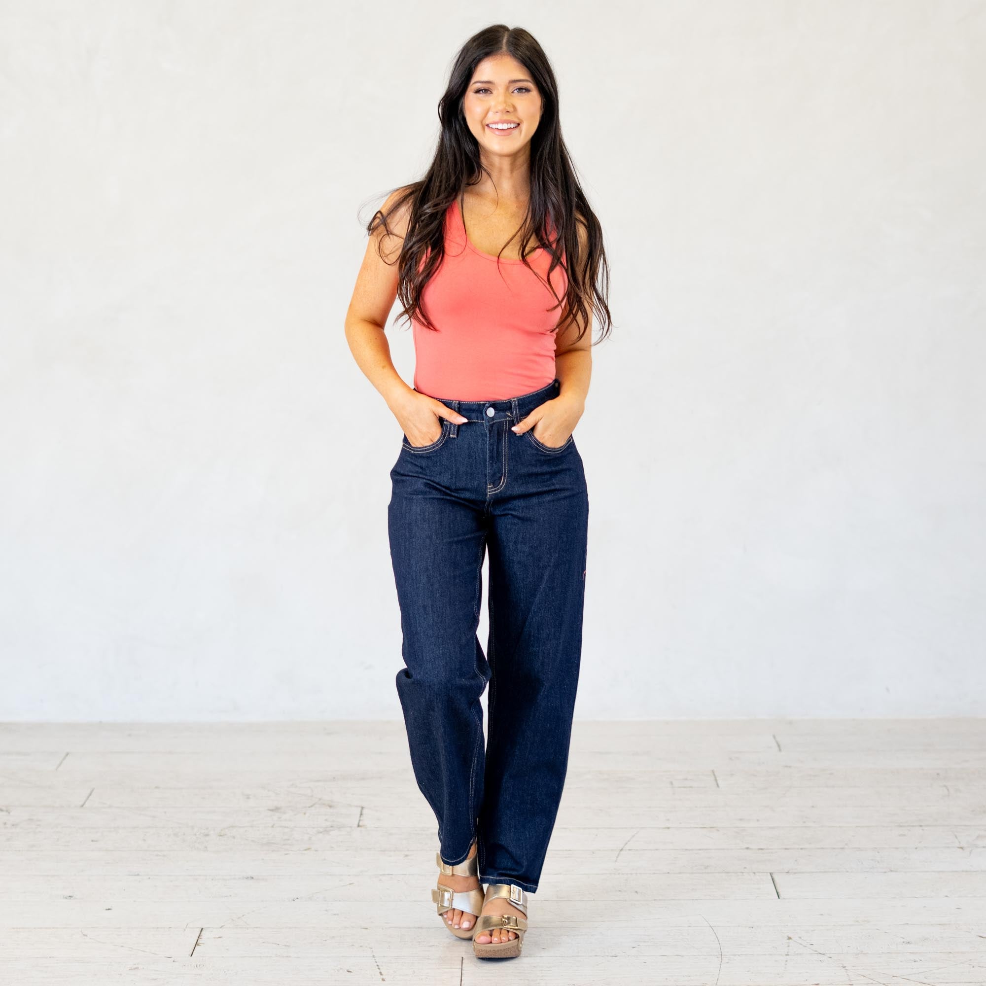 LOVERVET Divinity High Rise Dark Wash Slim Barrel Jeans