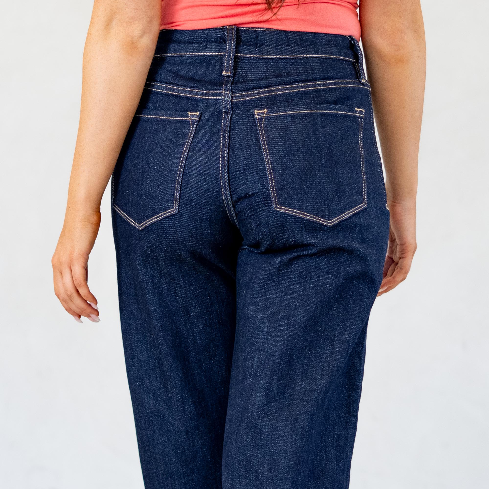 The dark wash finish gives a refined, polished touch perfect for dressing up or down, while the ankle-length cut highlights your favorite footwear. A finished hem and high-rise fit complete the look, delivering a timeless yet modern silhouette you’ll reach for again and again.