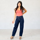 Elevate your denim rotation with the Divinity High Rise Slim Barrel Jeans, where structured sophistication meets effortless comfort. Crafted from comfort stretch denim, these jeans hug at the waist before easing into a soft barrel leg that creates a chic, sculpted shape.