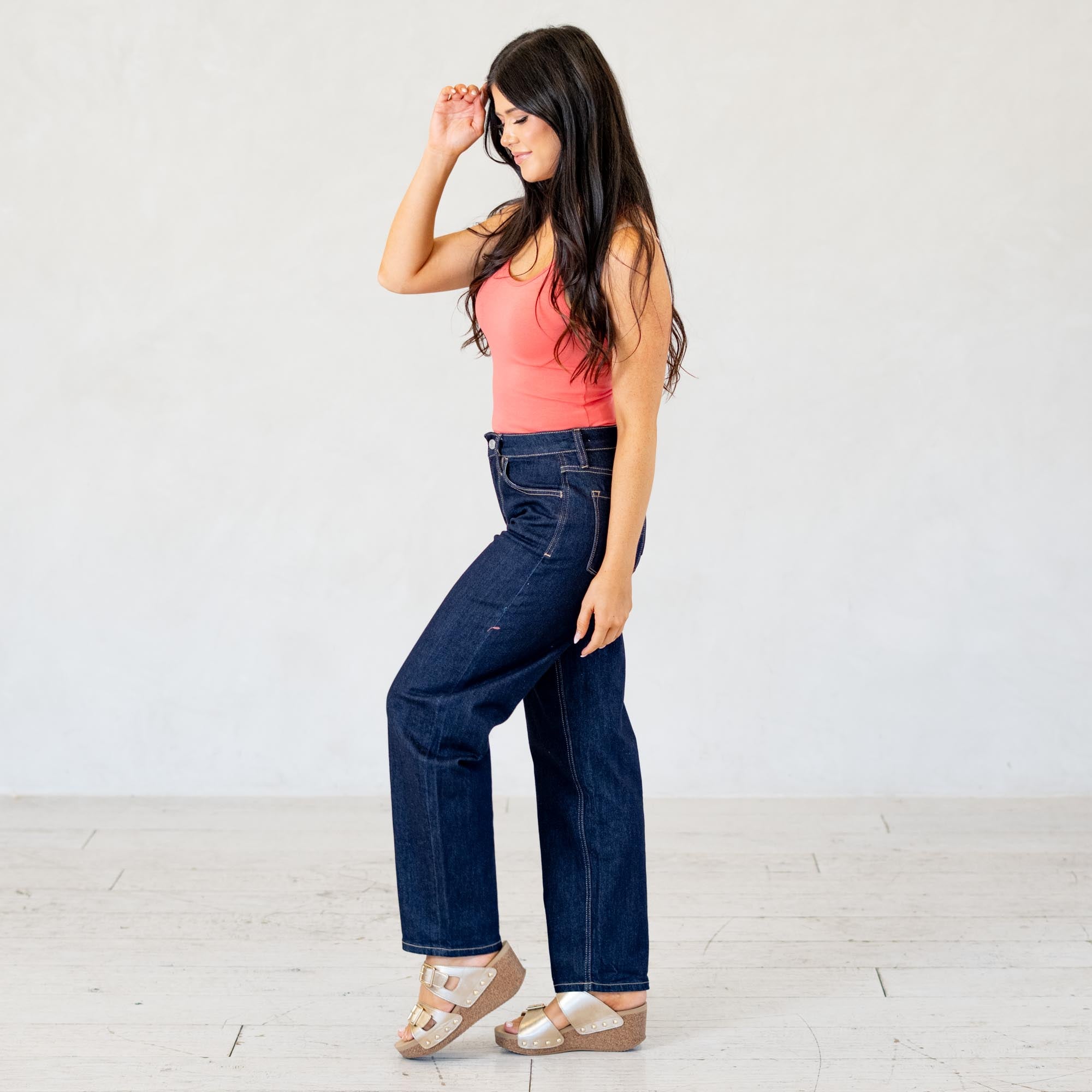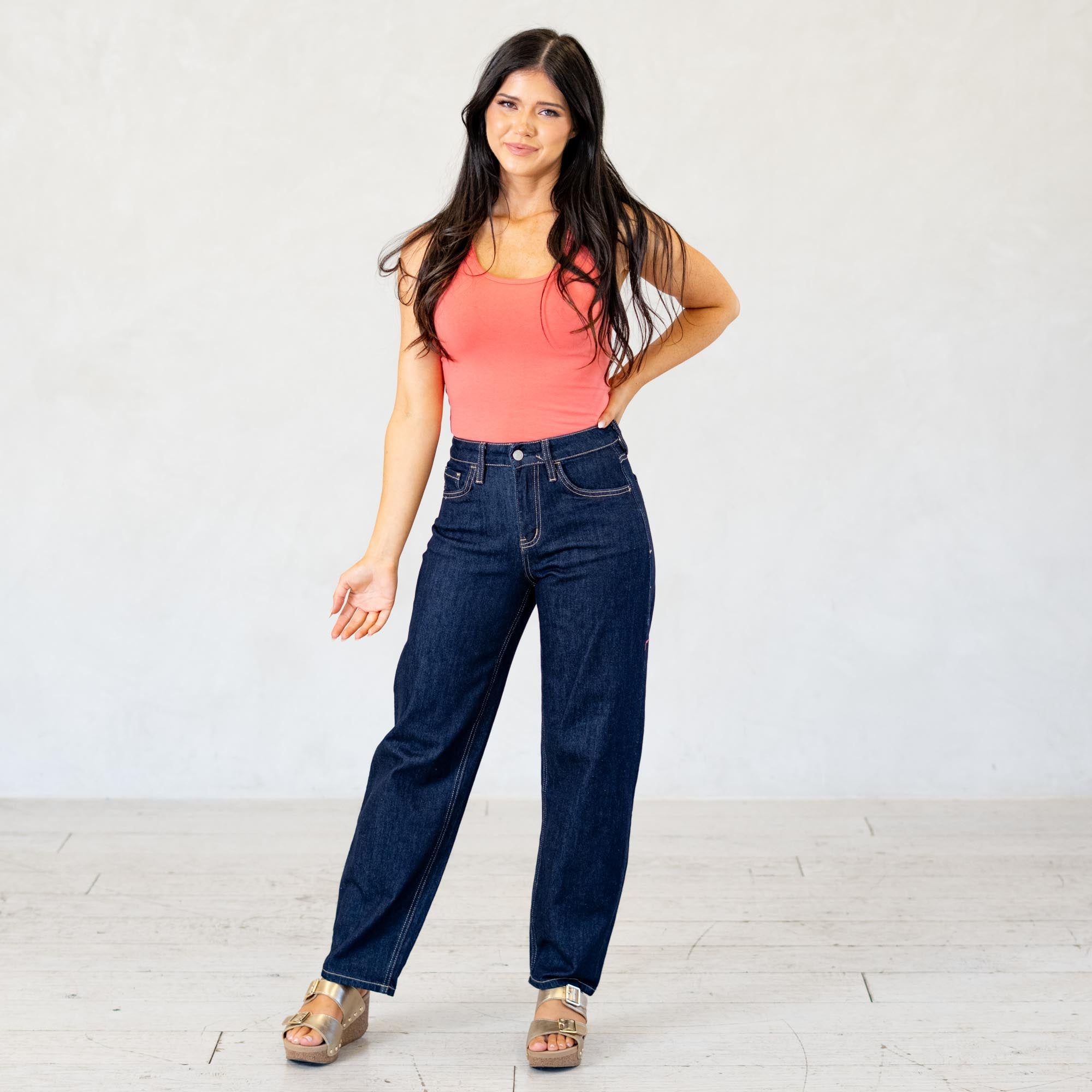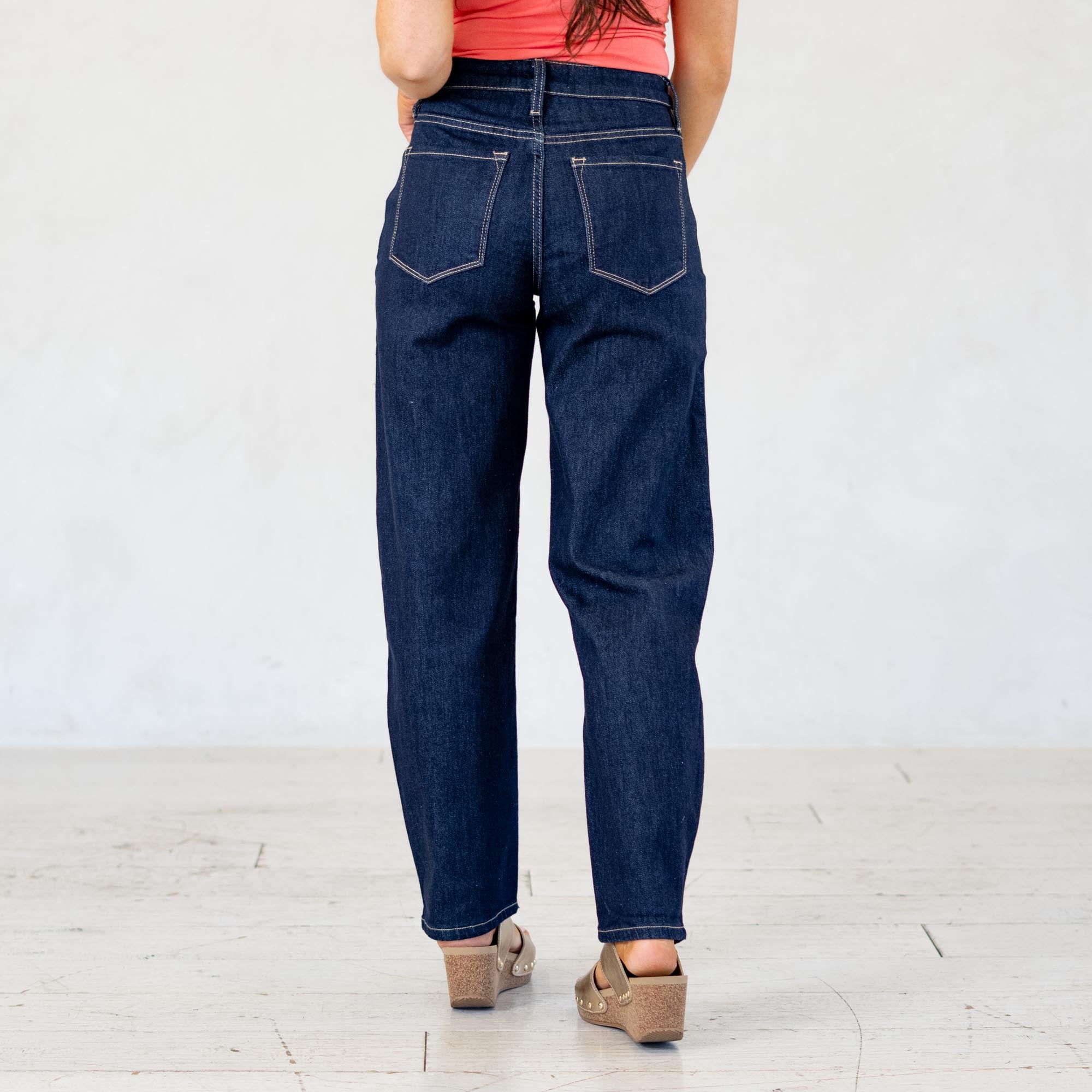 Divinity High Rise Dark Wash Slim Barrel Jeans