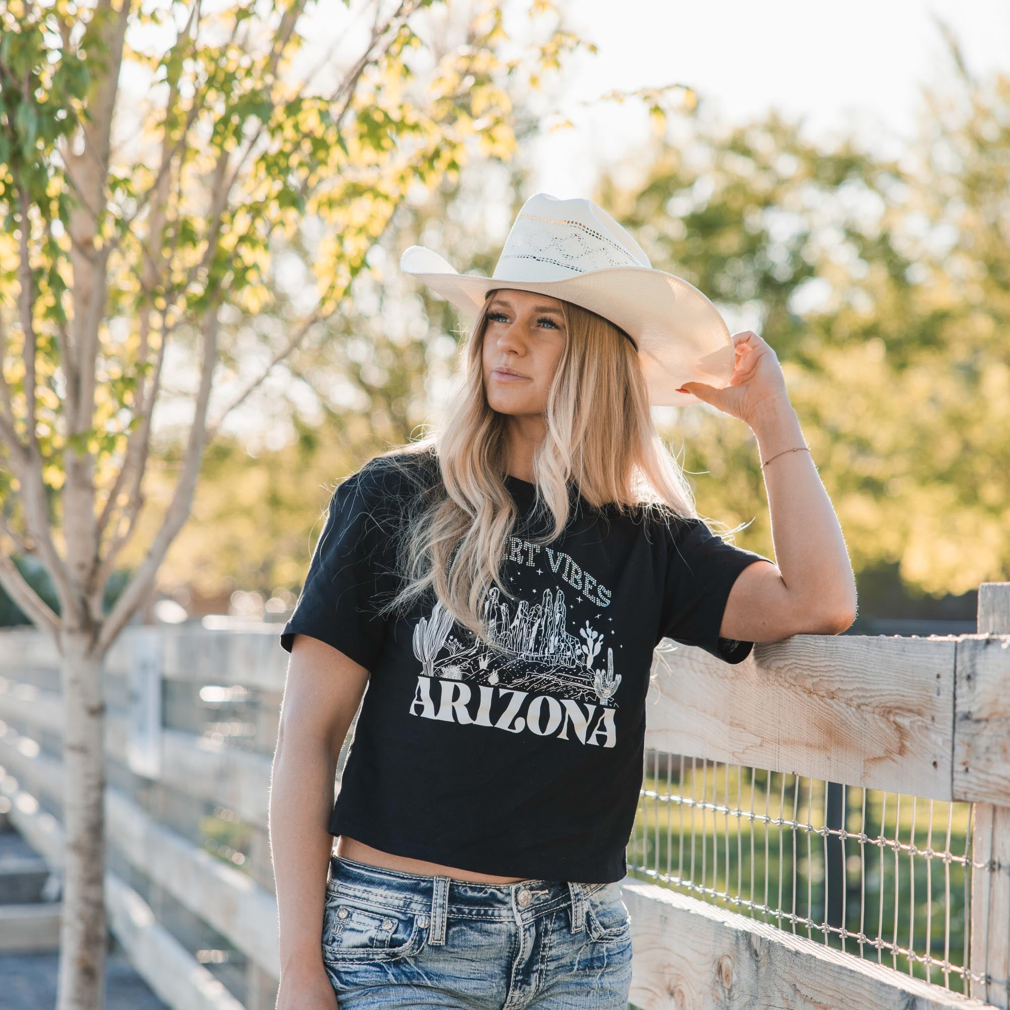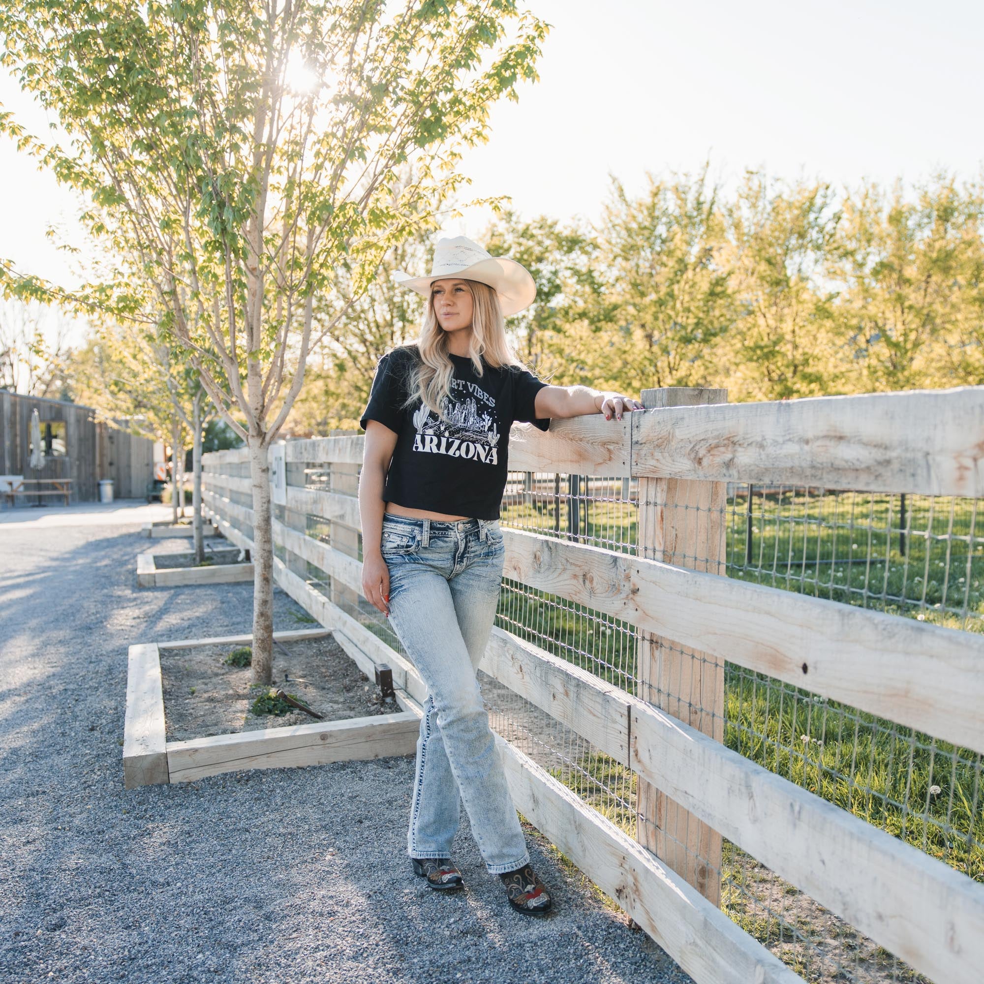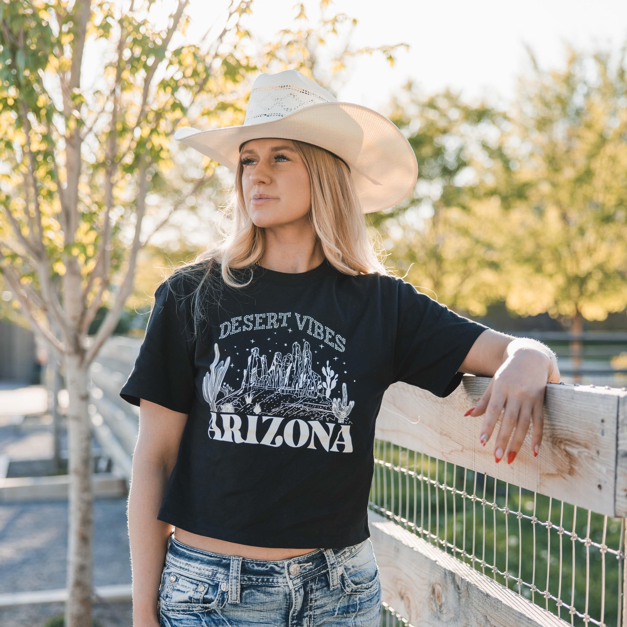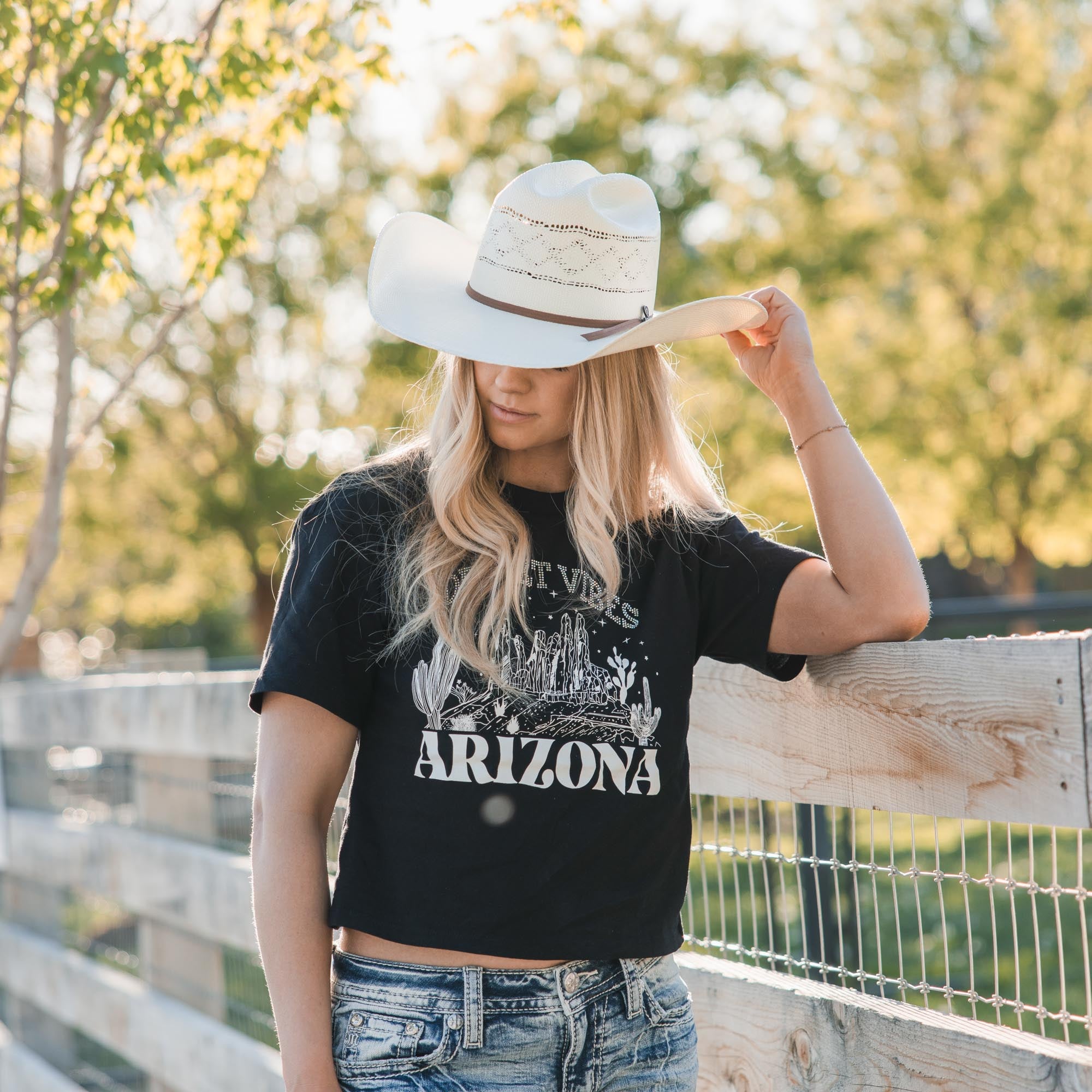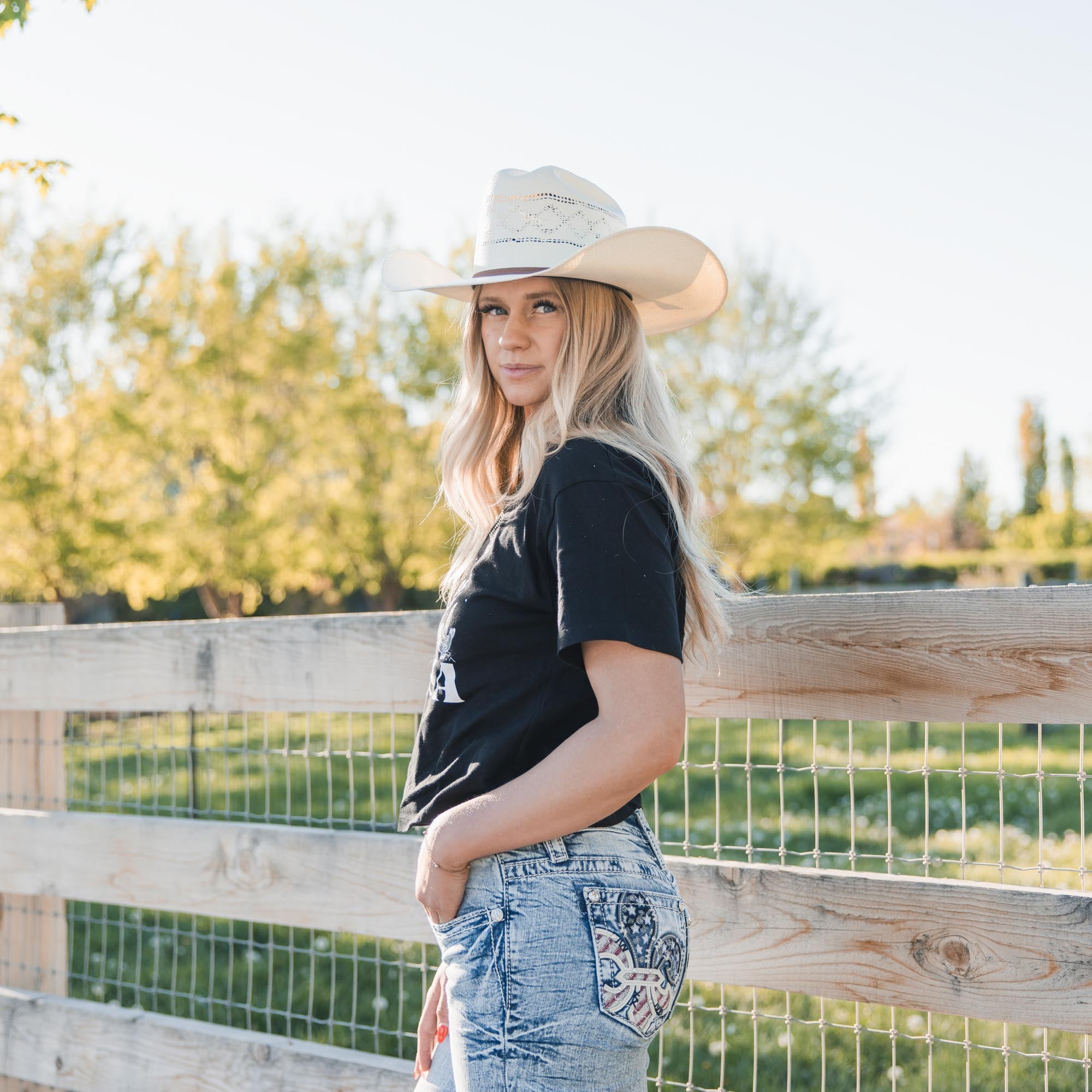 - Embroidered Americana design on frayed yoke and faux flap pockets