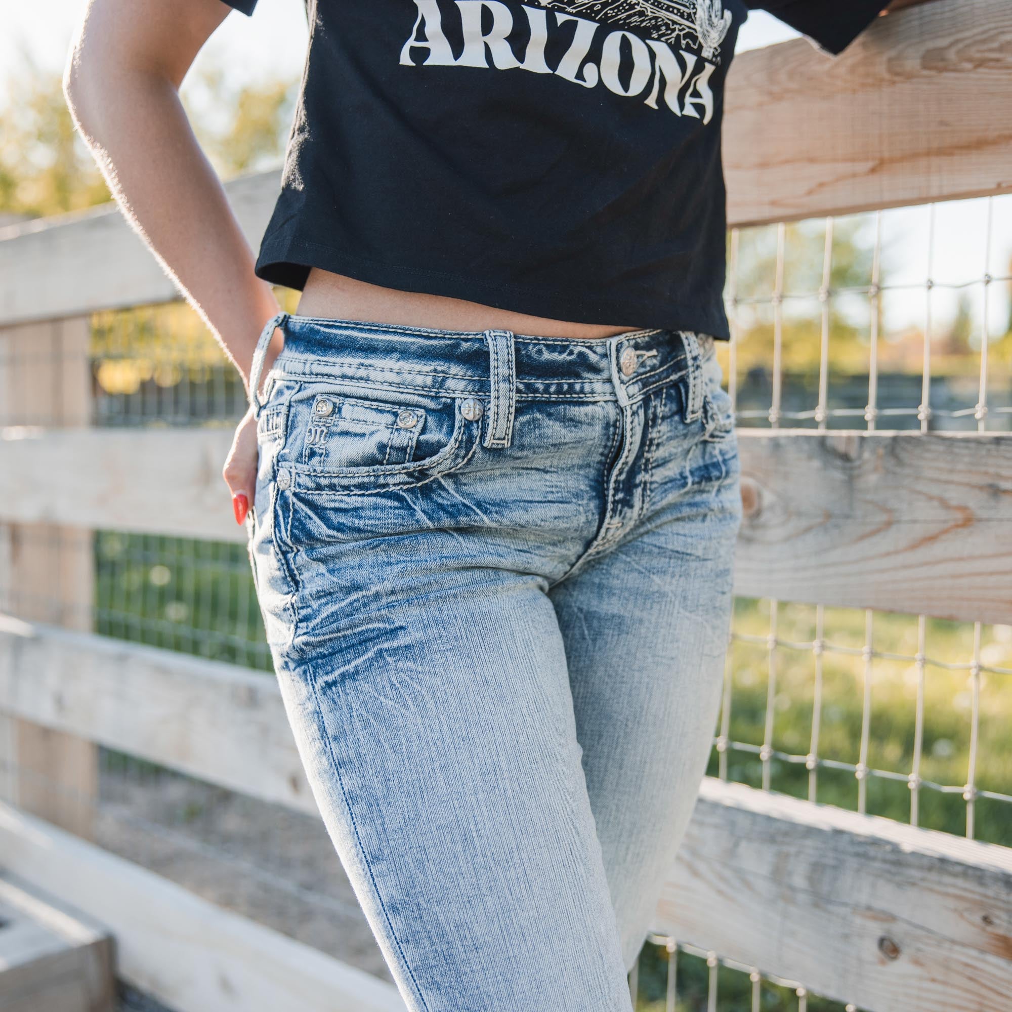 - Washed, mid-rise bootcut jeans