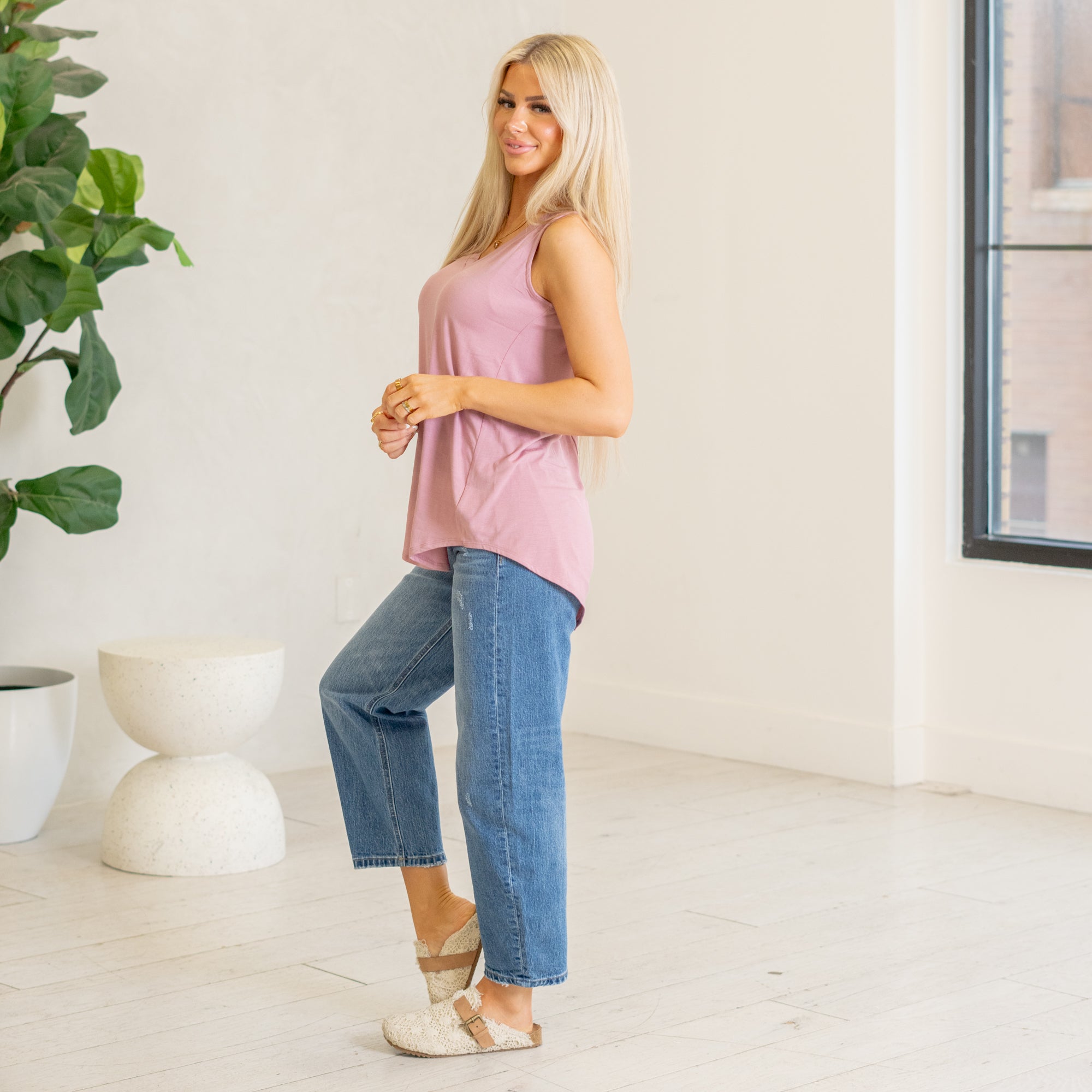 Sleeveless v-neck hi-low hem top