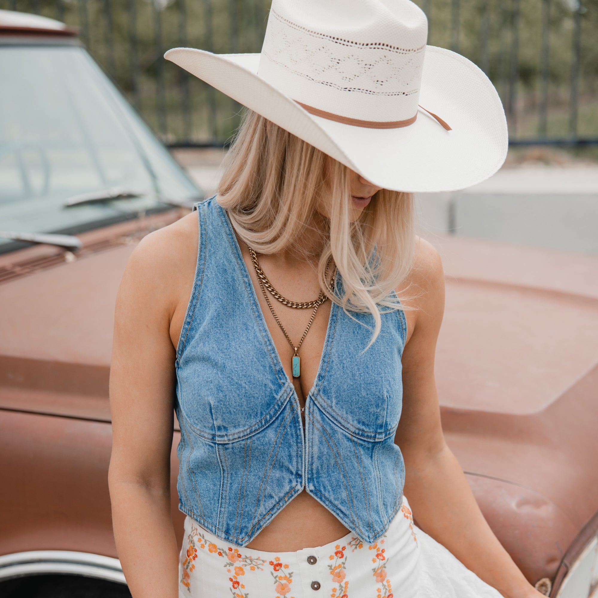 Plunge Neck Hook Closure Bustier Crop Denim Vest