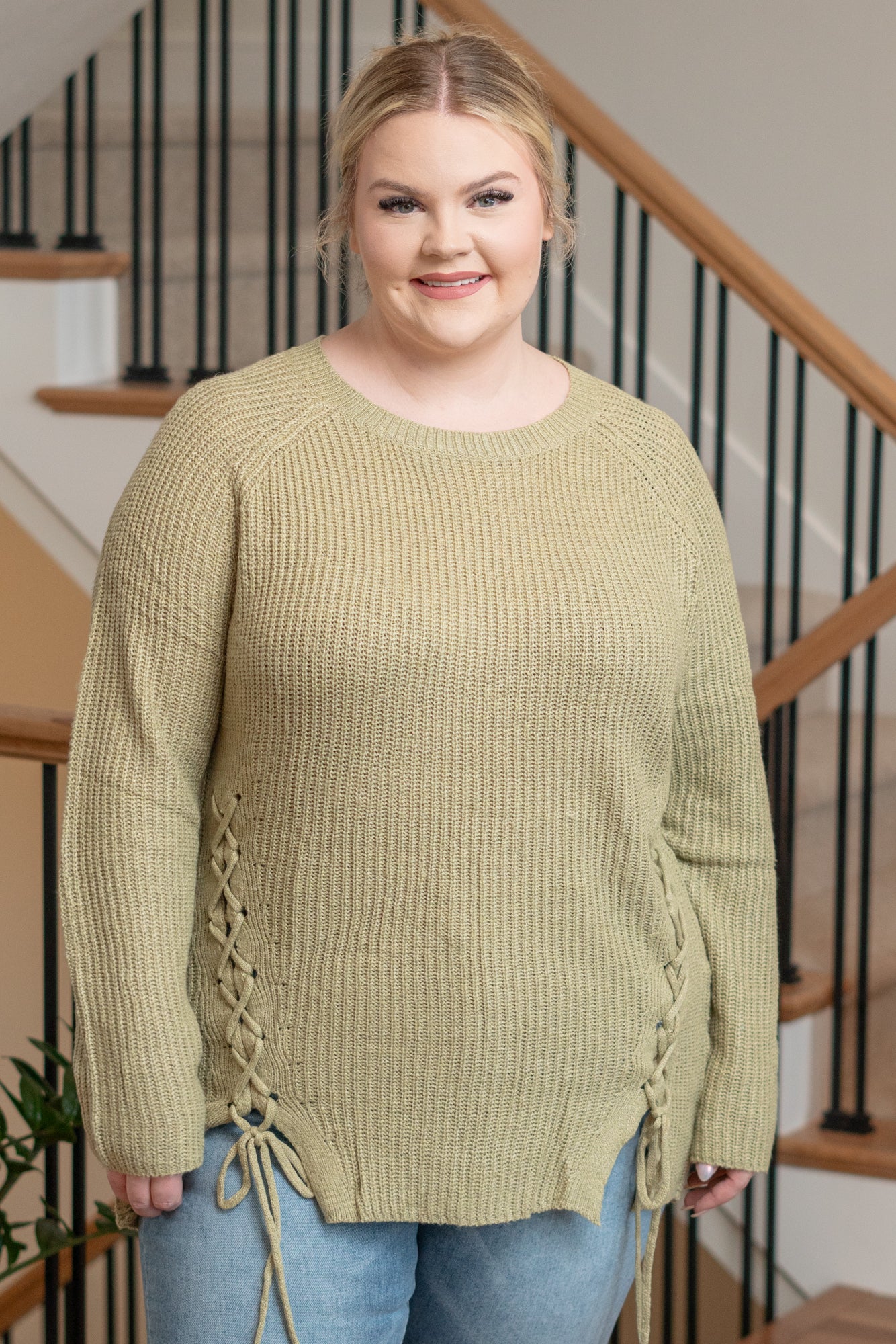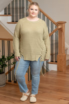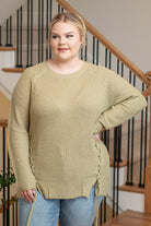 Plus Size Criss Cross Tie Knit Sweater - Sage