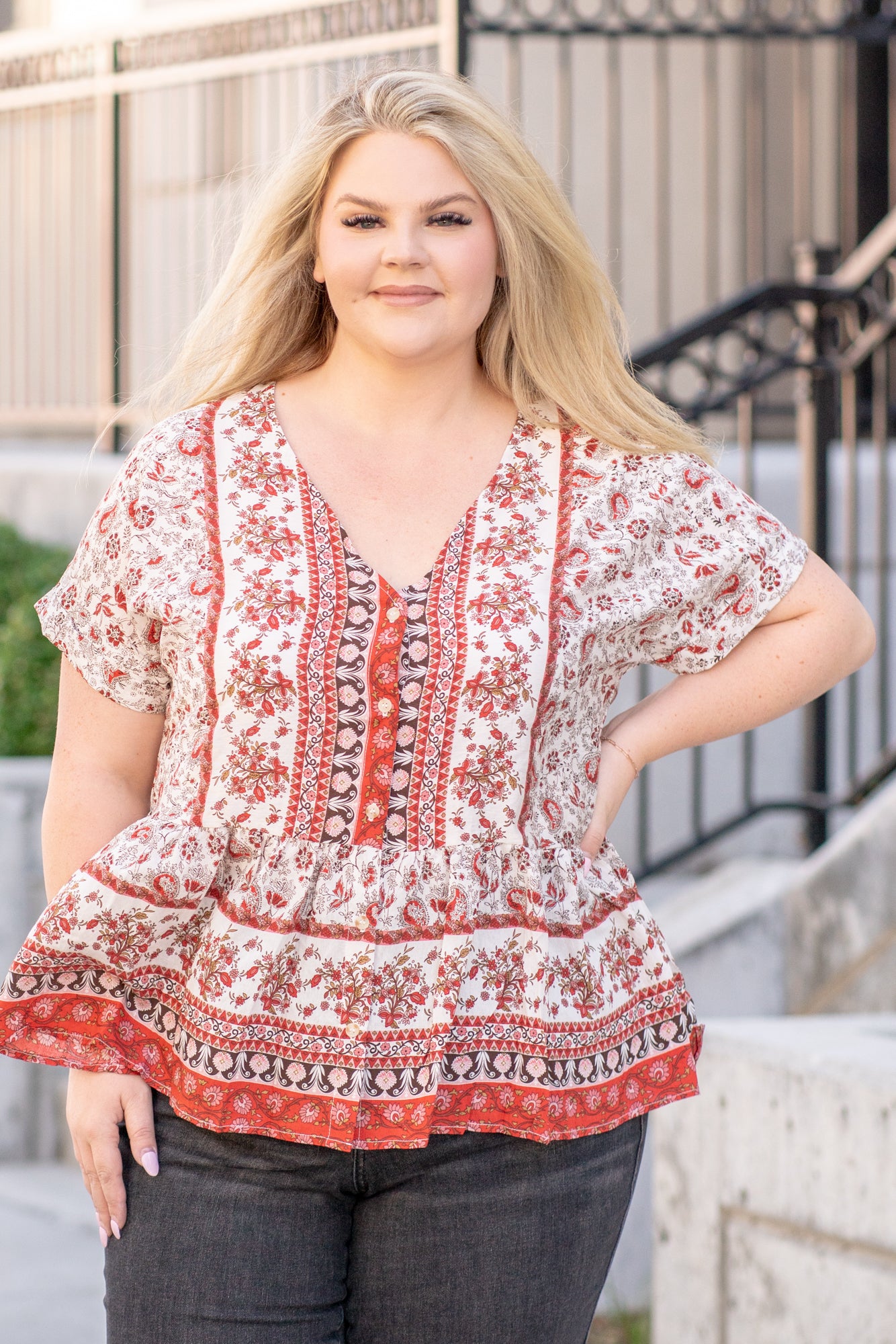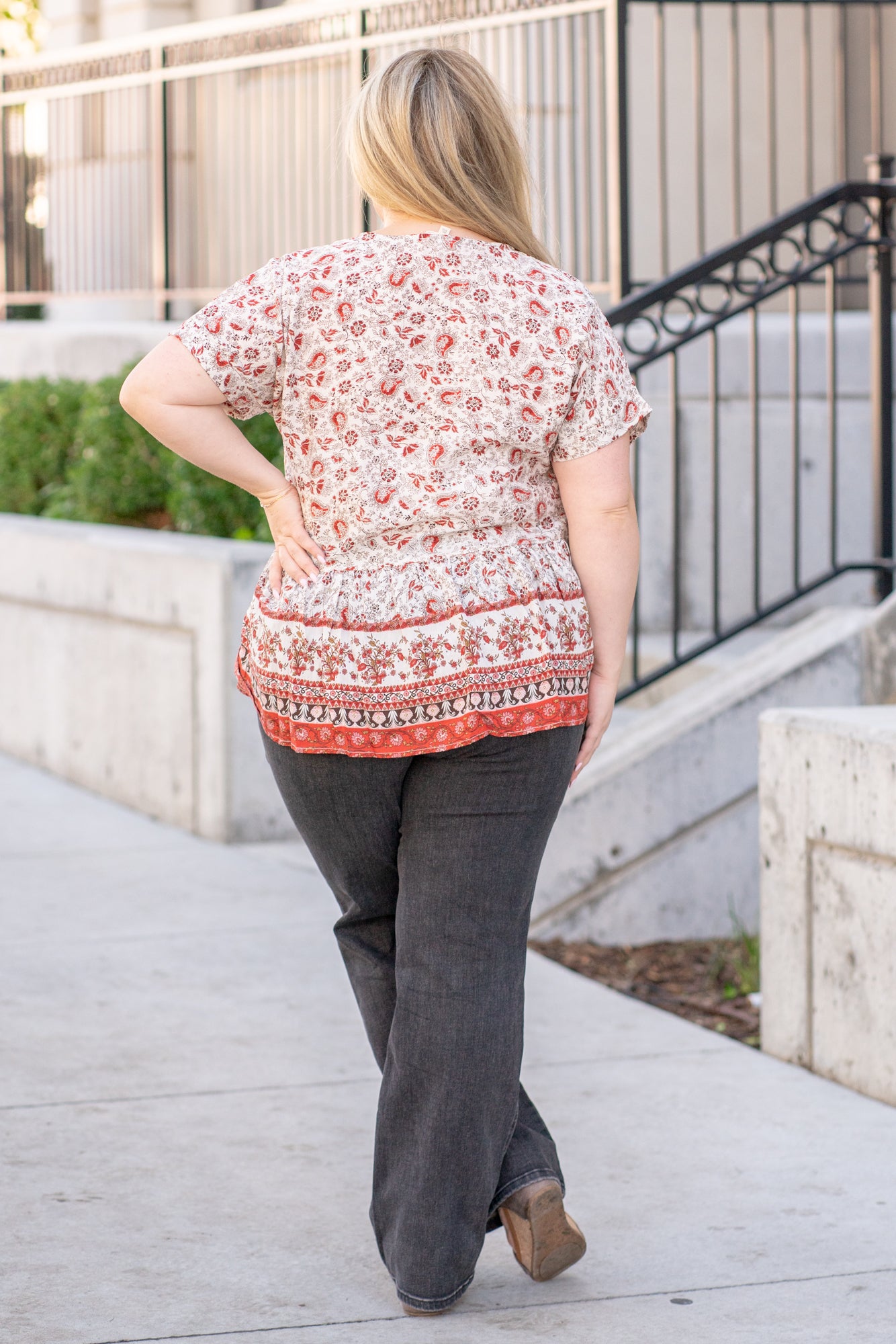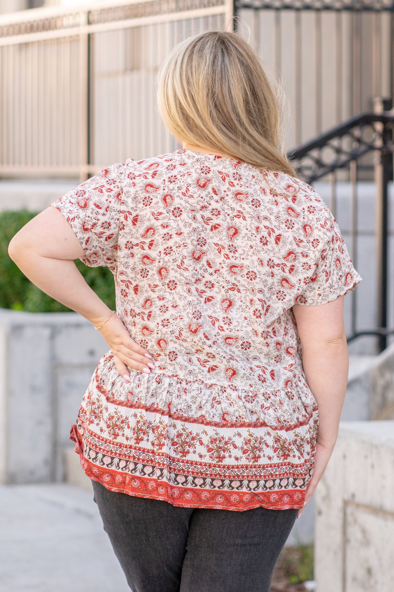 Plus Size Paisley Ruffle Hem Top