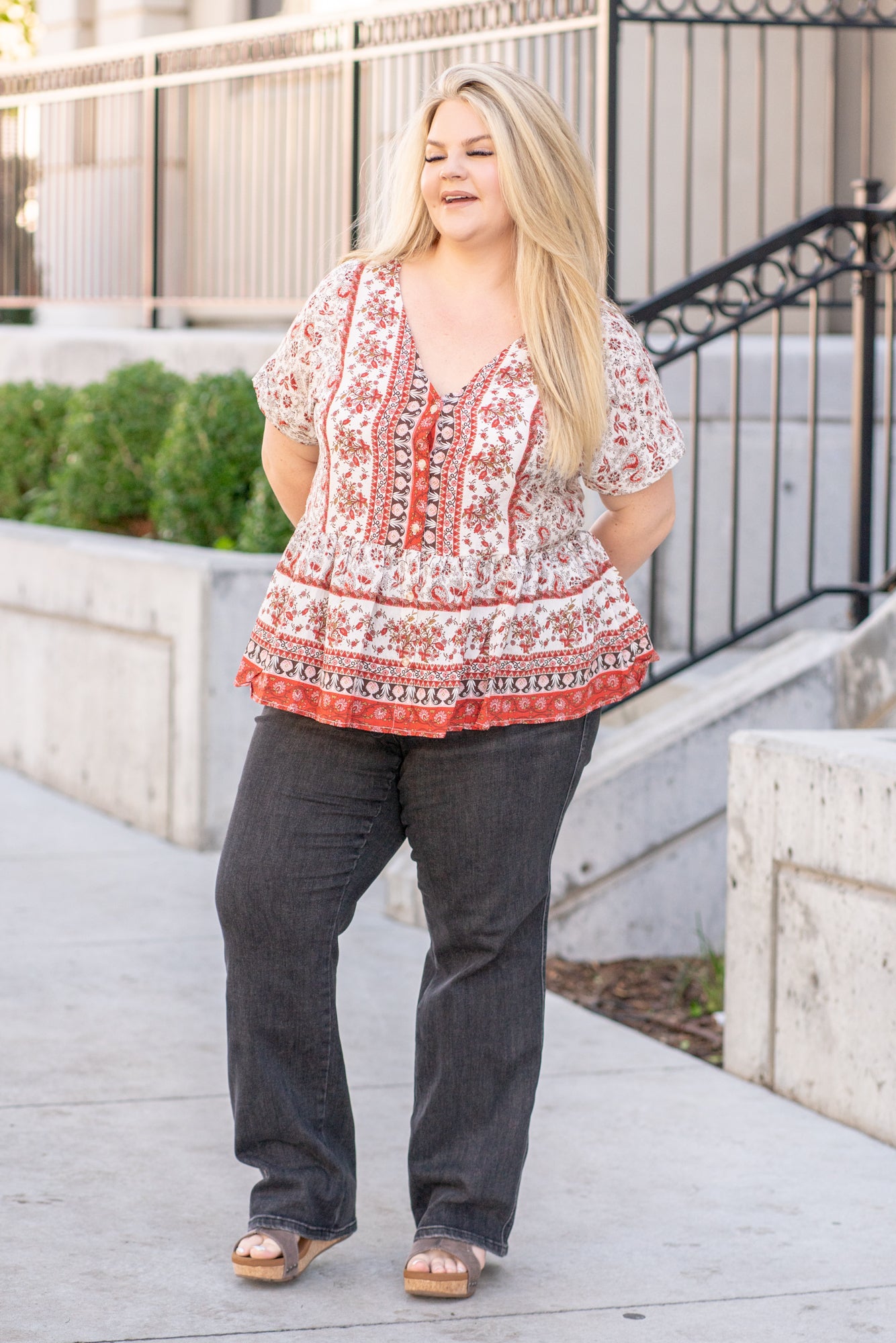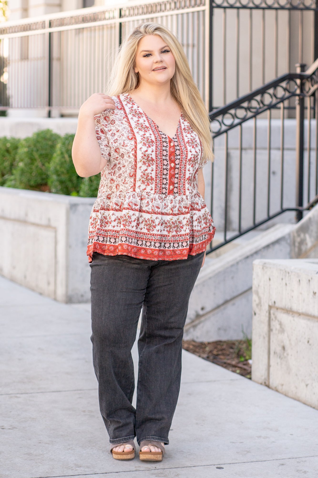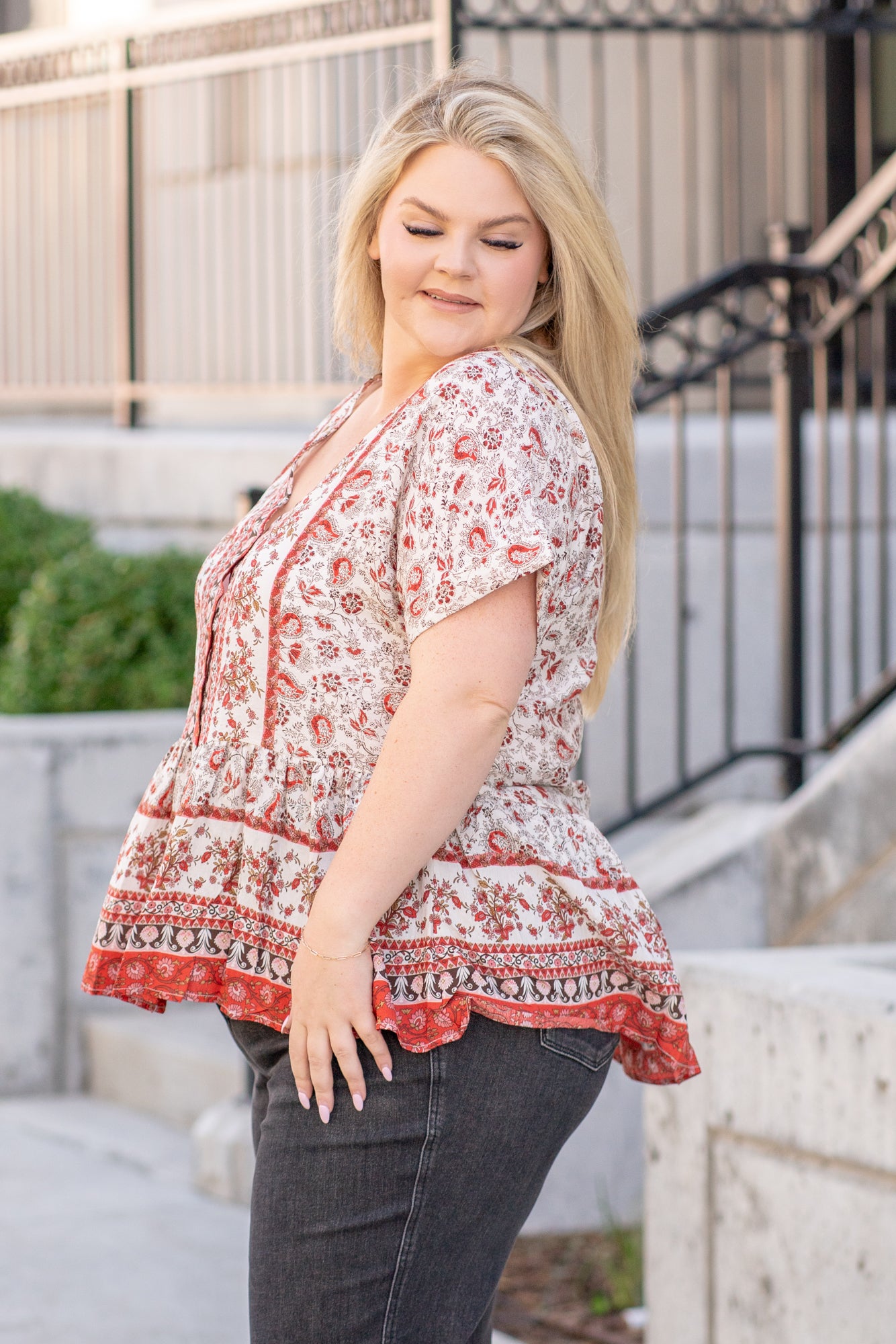 Plus Size Paisley Ruffle Hem Top