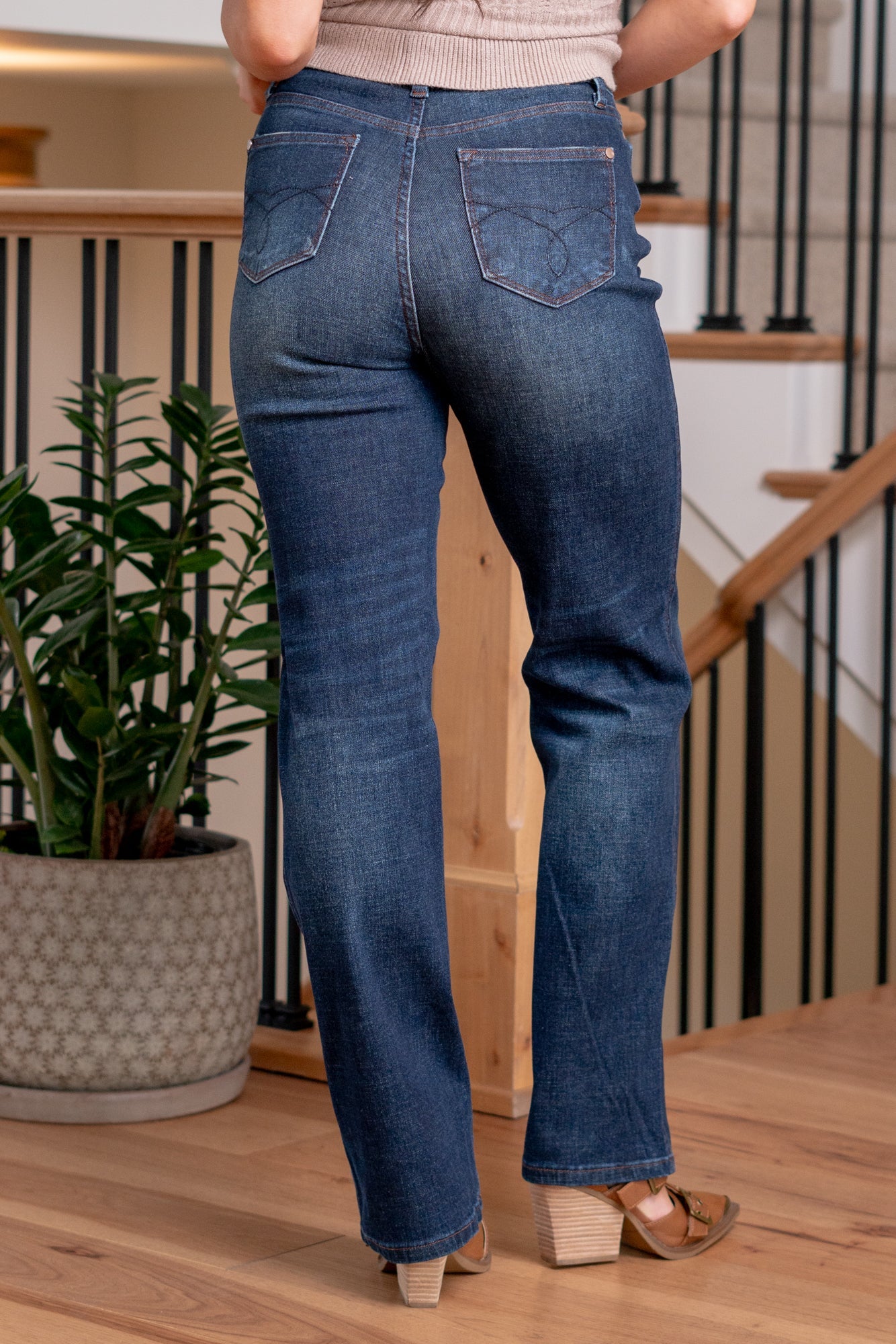 Get the perfect blend of comfort and style with these Judy Blue High Rise Straight Leg Jeans. Designed in a flattering dark wash and crafted with stretch material, these jeans offer both flexibility and a chic look. Featuring a high-rise fit and a button fly, these jeans are ideal for creating a stylish and comfortable ensemble.