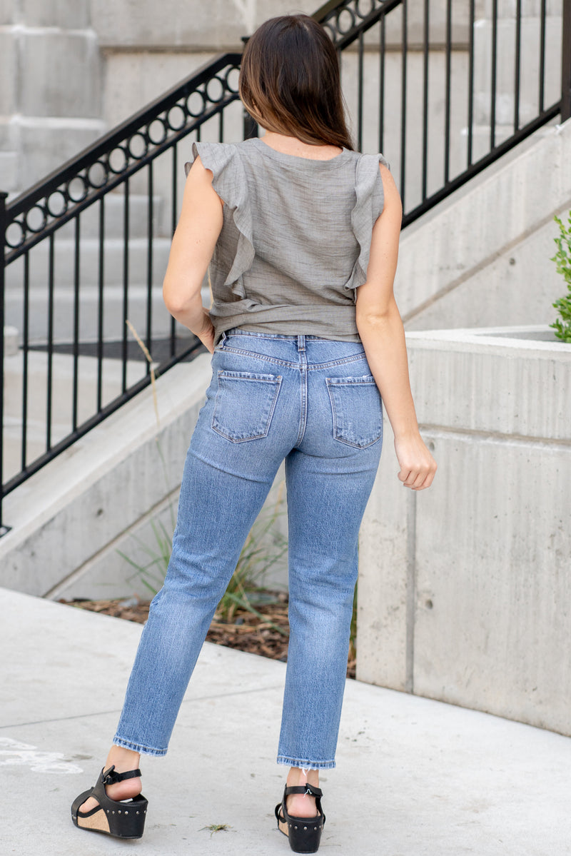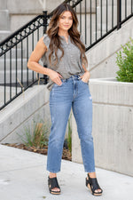 The Yumi Premier Ultra High Rise straight Jeans are a staple piece missing from your denim collection. This straight comes in a beautiful medium wash with light whisker details for a naturally lived-in look.