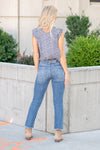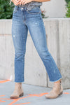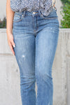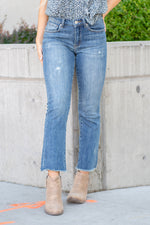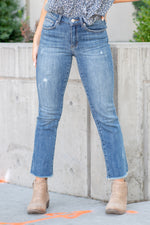 Discover the perfect balance of style and comfort with our Medium Blue Mid-Rise Raw Hem Straight Leg Jeans. Designed with a flattering mid-rise fit and slight distressing, these jeans exude effortless cool. The raw hem adds an edgy touch to the classic straight-leg silhouette, making them a versatile choice for both casual outings and more polished looks.