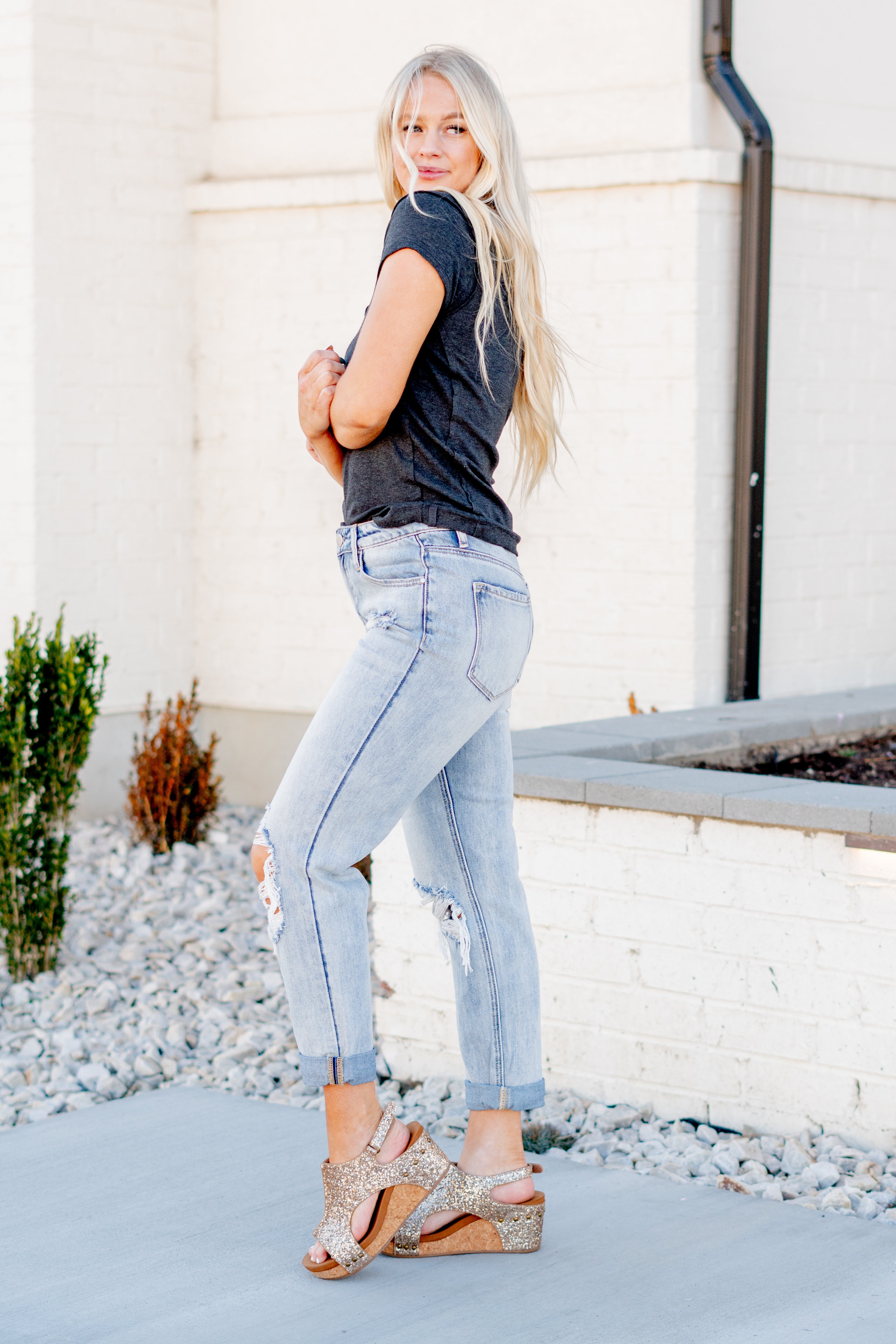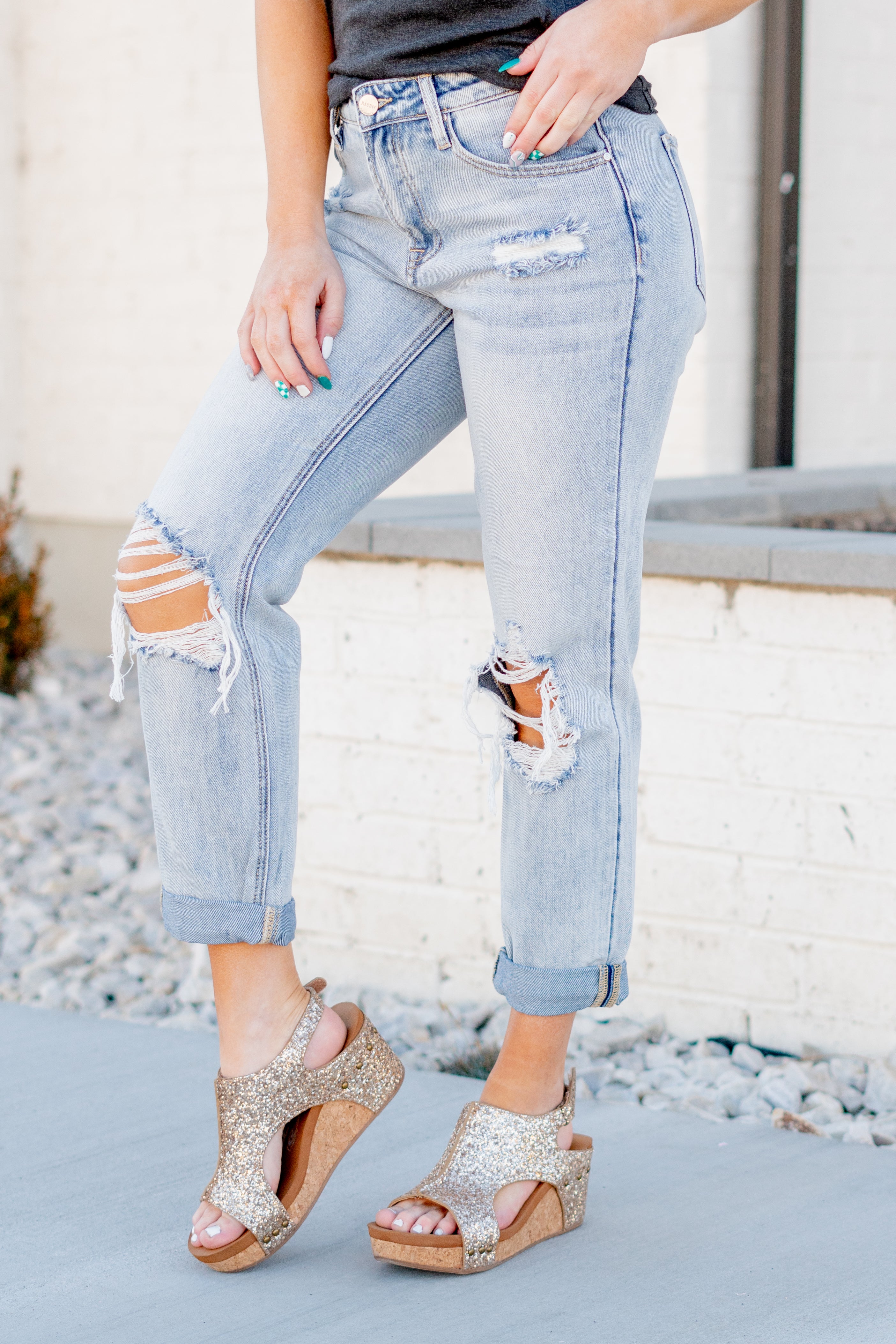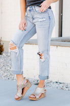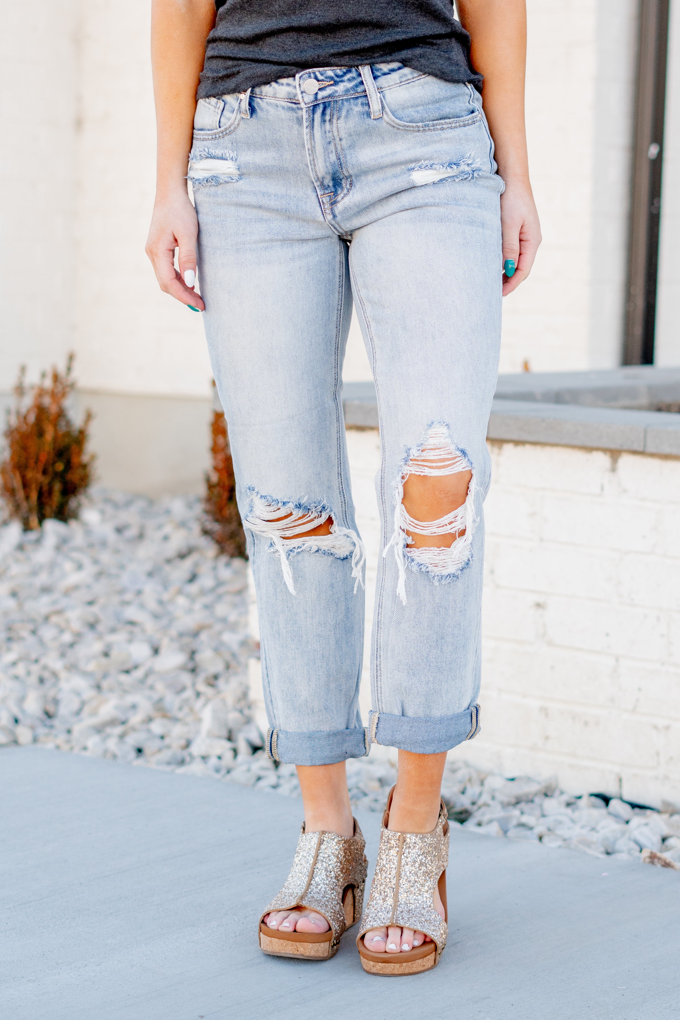 Embrace the effortlessly cool vibe with our Rigid Distressed Boyfriend Jeans. These jeans feature a relaxed fit for a laid-back feel, and the distressed detailing adds a touch of edge to your look. The rigid denim provides an authentic feel, making them a perfect choice for casual outings. Pair them with a graphic tee and sneakers for an easygoing and stylish ensemble.