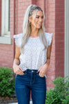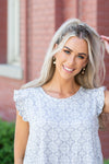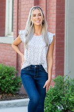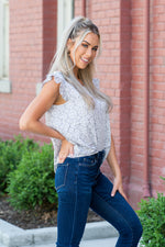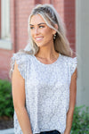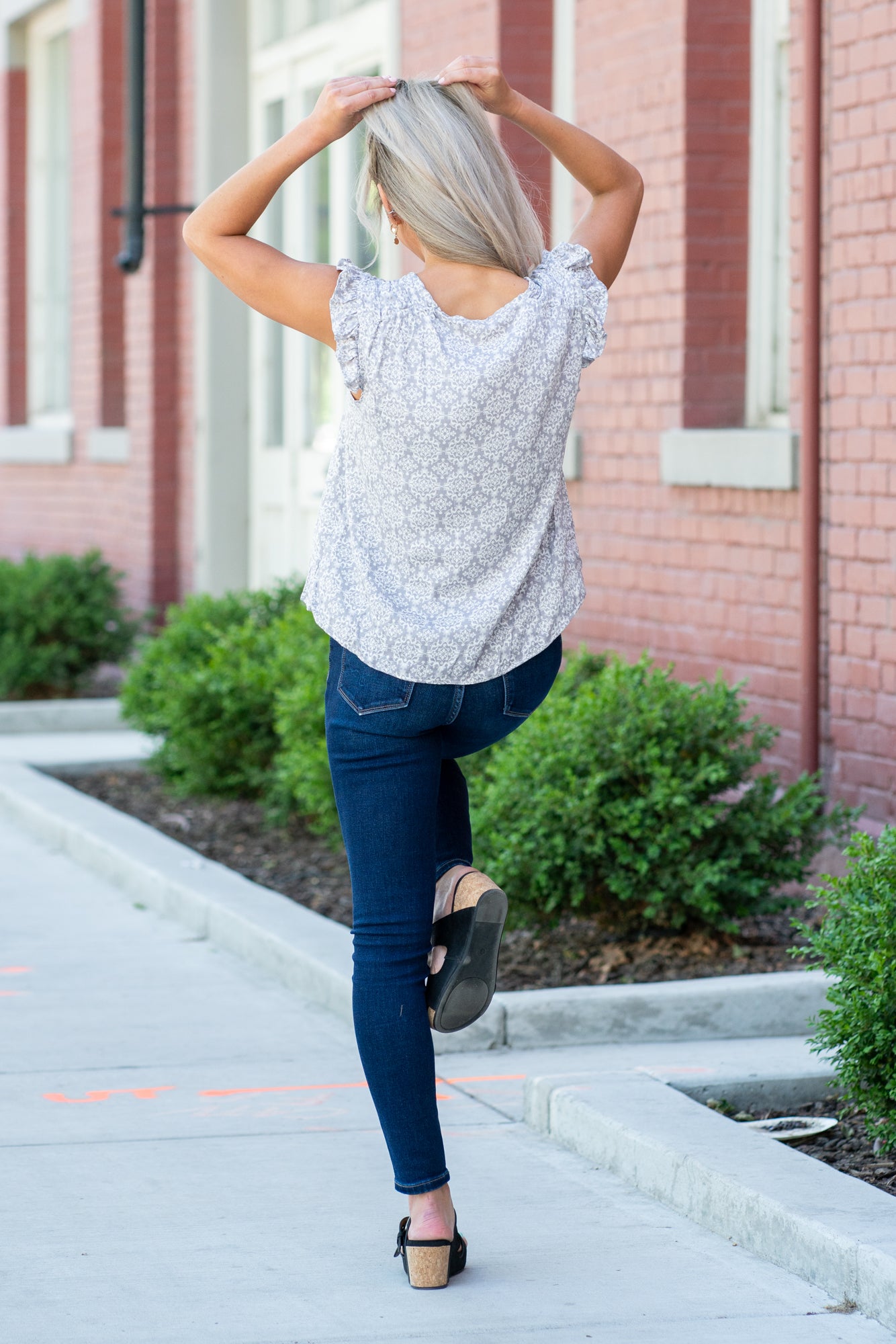 Riverton Sleeveless Ruffle Floral Top - Grey