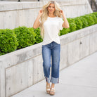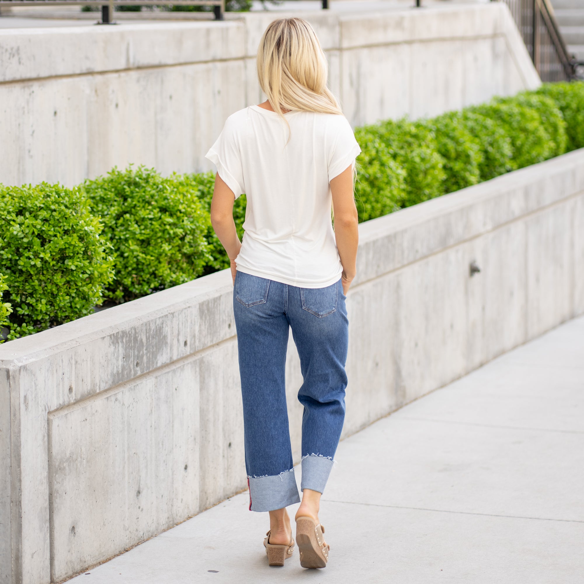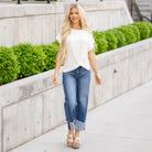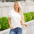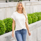 Simple with a little extra something—our Sunkissed Shirred Tee is the everyday basic you’ll be reaching for on repeat. Made with soft and stretchy rayon span knit, it features short sleeves and a flattering shirred front detail that adds the cutest touch. Easy to dress up or down, this top is perfect for pairing with high-rise jeans, flowy skirts, or your go-to shorts.