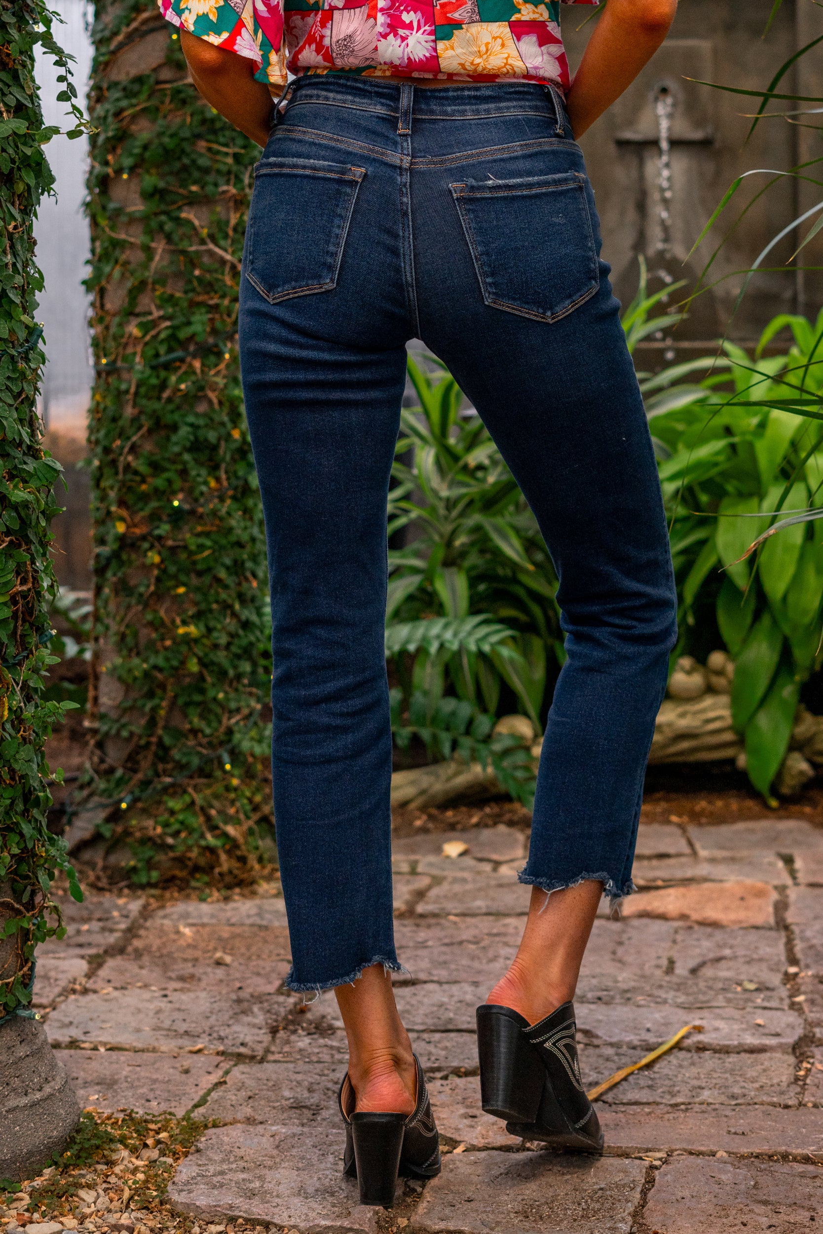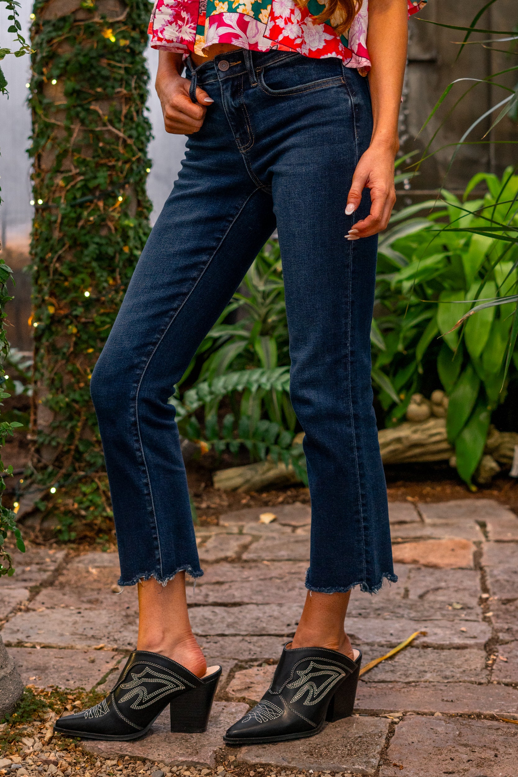 Introducing our Mid Rise Crop Slim Straight Jeans, the perfect blend of comfort and style. Made from comfortable stretch denim, these jeans feature a mid-rise waist for a flattering fit. The distressed hem adds a touch of edgy flair, while the cropped length keeps you on-trend. Pair them with your favorite top for a versatile and chic look that can take you from day to night effortlessly.