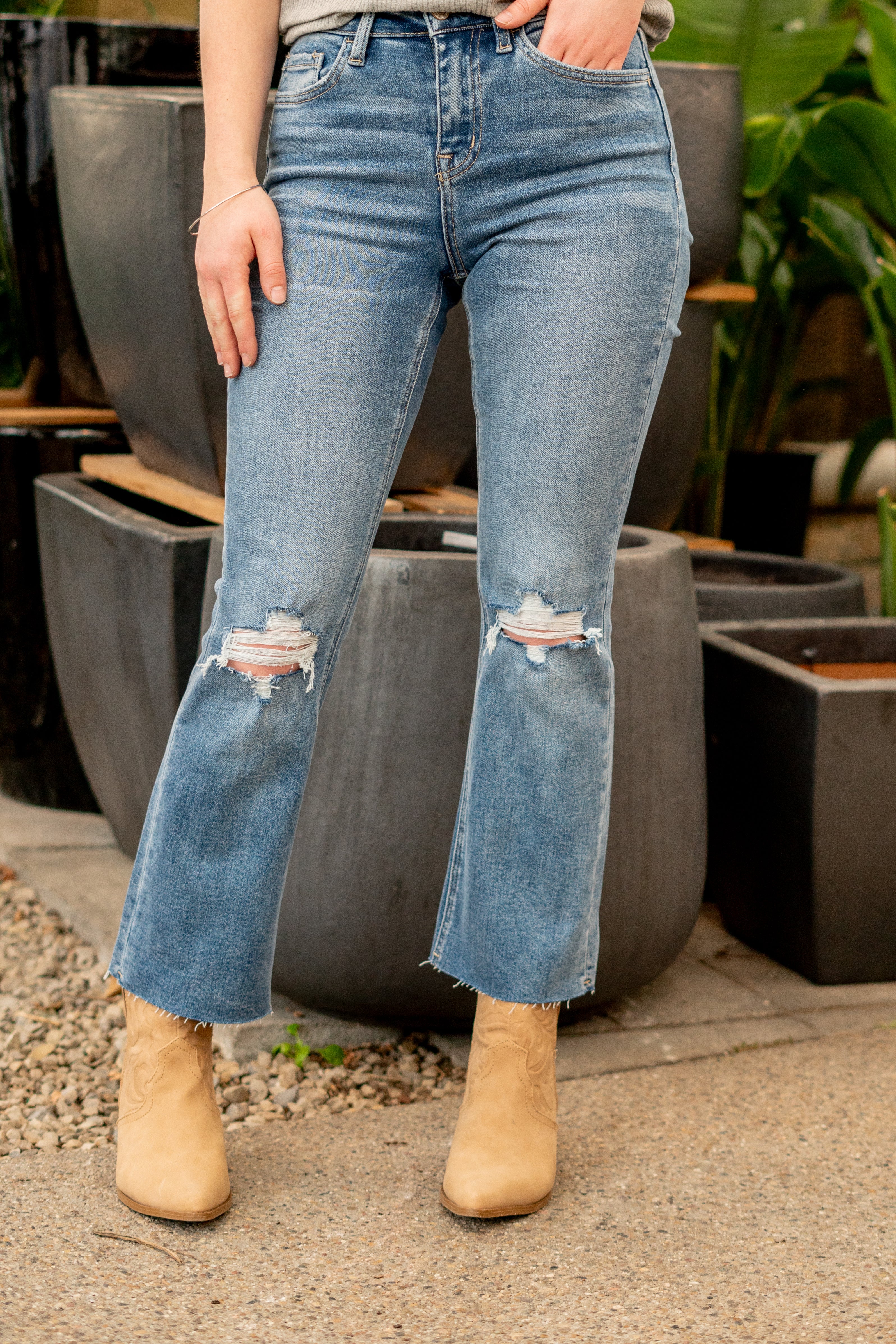 VERVET Feasibly High Rise Crop Flare Medium Blue Wash