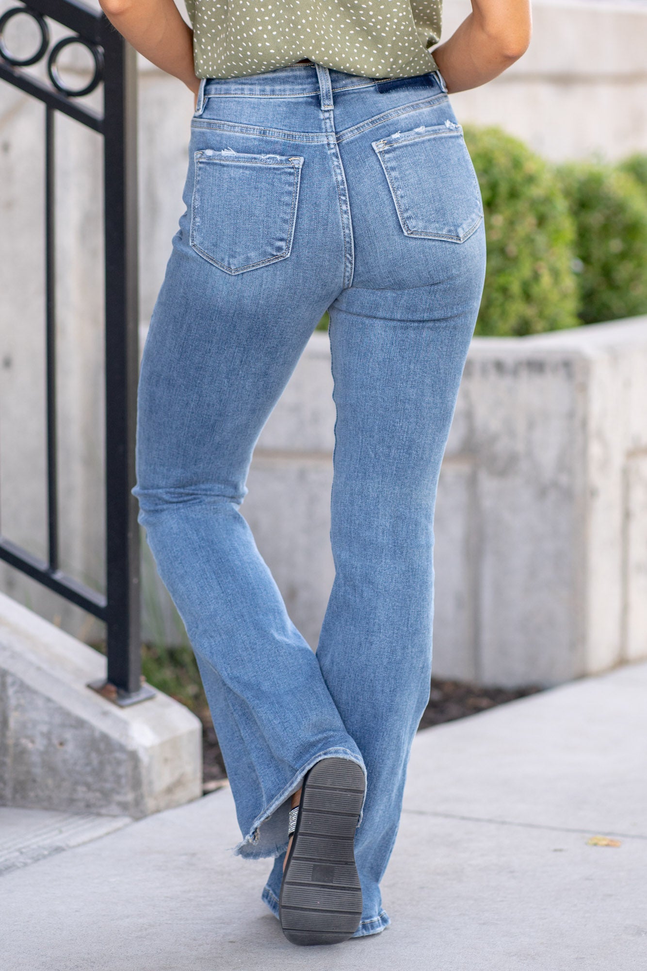 VERVET Crate High Rise Slant Hem Flare Regular & Plus Sizes Medium Blue Wash