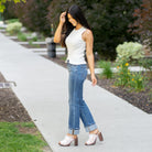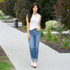 Meet the Nico High Rise Cuffed Straight Jeans—an effortlessly cool classic with a modern twist. These ankle-length straight jeans feature a flattering high-rise waist, subtle distressing, and a polished single cuff hem that adds just the right amount of edge. Made from comfort stretch denim, they hug in all the right places while letting you move freely. Whether dressed up with heels or styled casually with sneakers, Nico fits the vibe.