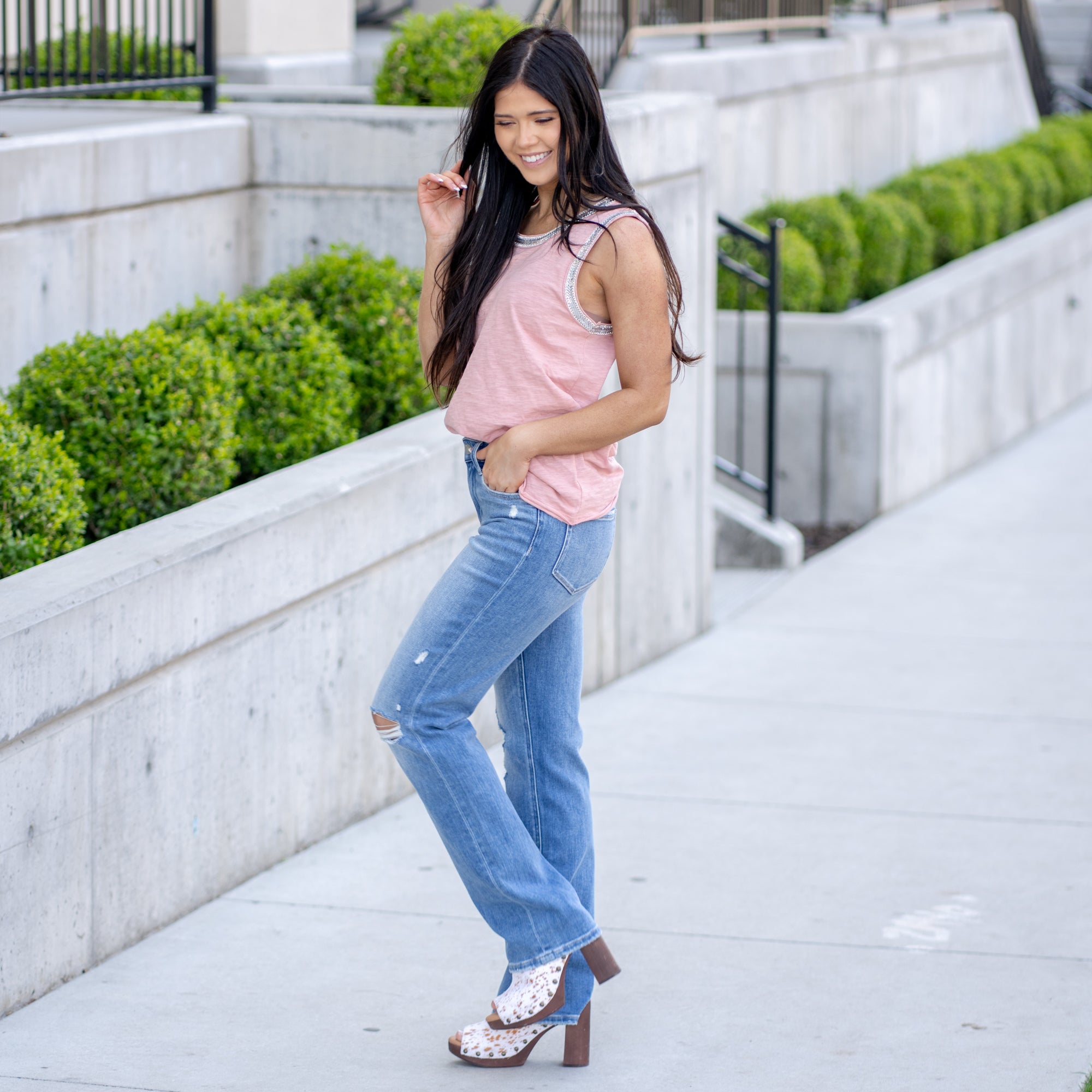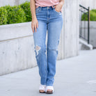 These High Rise Full Length Straight Leg Jeans are a wardrobe essential with just the right edge. Crafted from comfort stretch denim, they feature a flattering high rise waist, full-length straight leg fit, and light distressing for a perfectly worn-in vibe. Finished with a clean hem, they’re the jeans you’ll reach for on repeat—easy to style, easy to love.