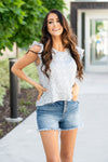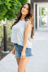 Riverton Sleeveless Ruffle Floral Top - Blue