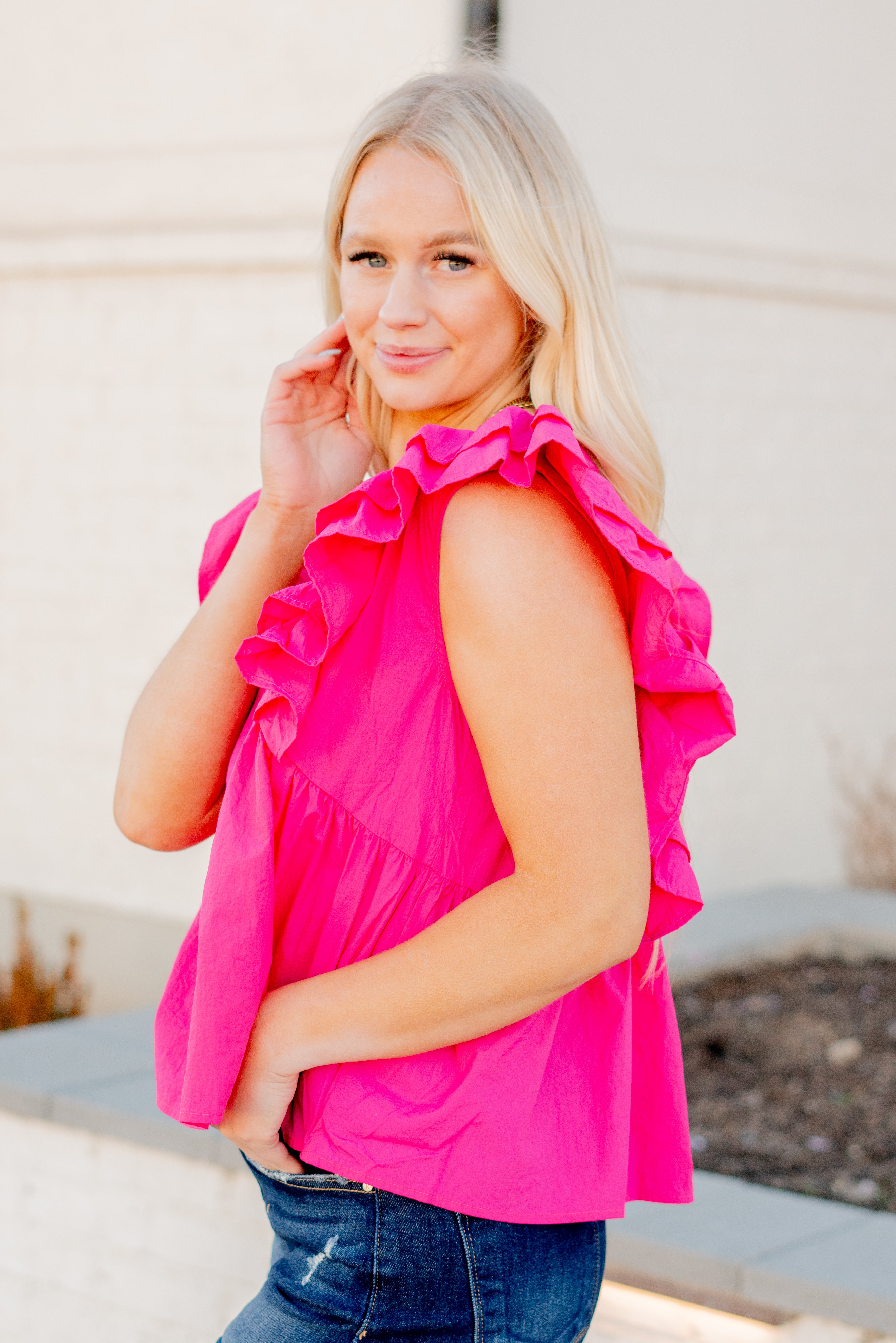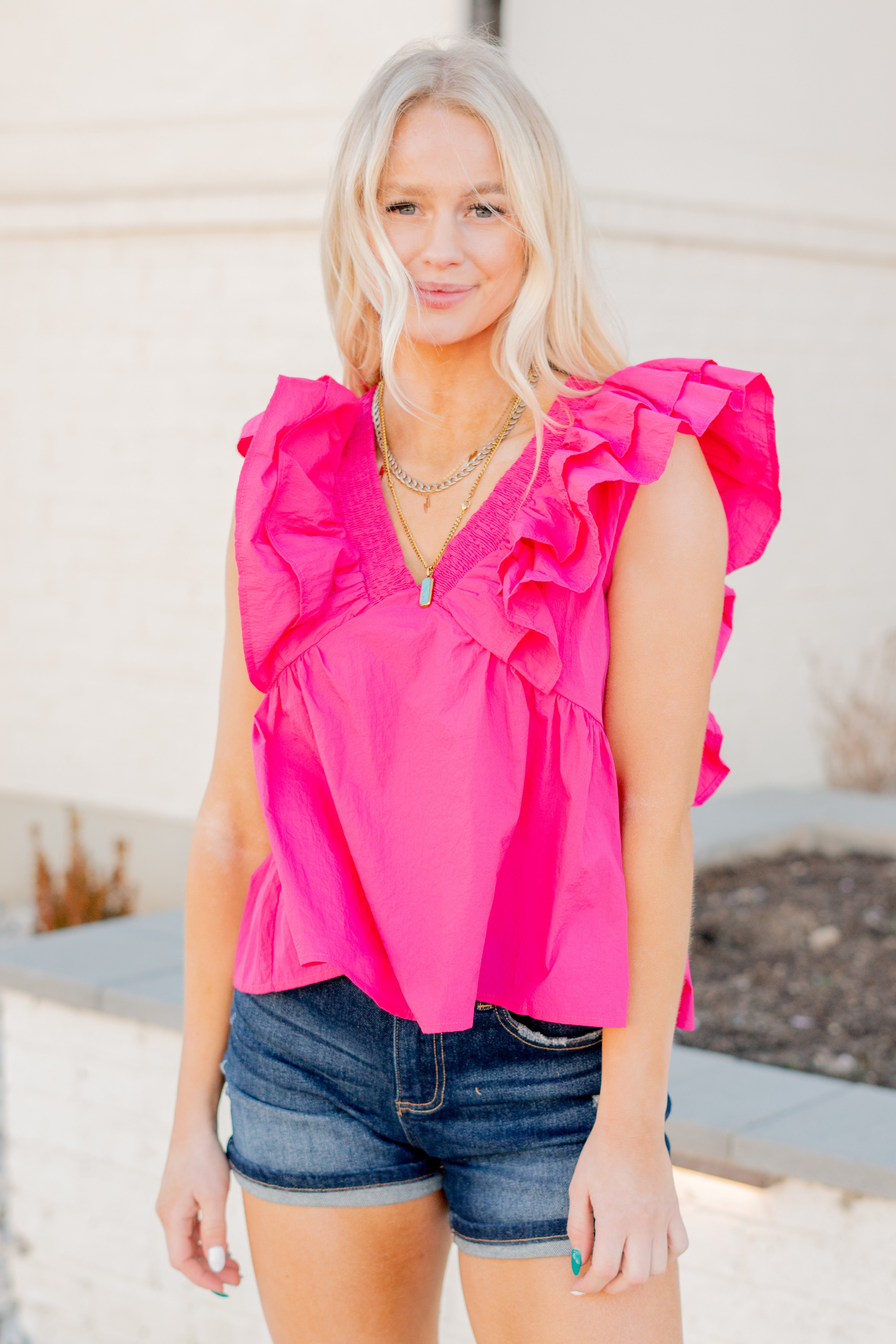 Ruffle Sleeve V Neck Baby Doll Top