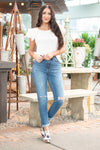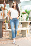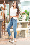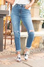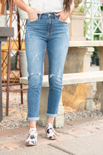 These comfortable boyfriends have a cuffed hem and ripped legs. Pair with a white tee and sandals this season for a casual look.