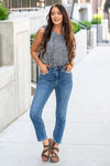 Alexis wears a size 25 in jeans, a small in tops, and 7 in shoes. She is wearing size 25 in these jeans.
