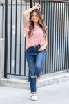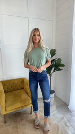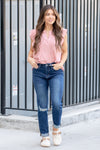 Jacquelyn wears a size 25 in jeans, a small in tops, and 6.5 in shoes. She is wearing size 25 in these jeans.