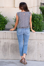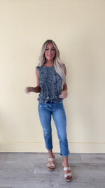 Alexis wears a size 25 in jeans, a small in tops, and 7 in shoes. She is wearing size 25 in these jeans.